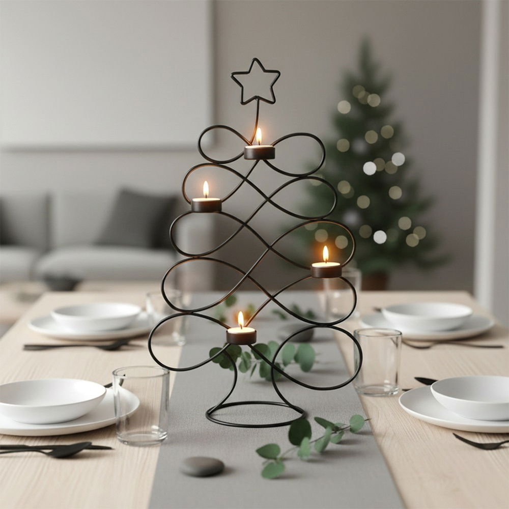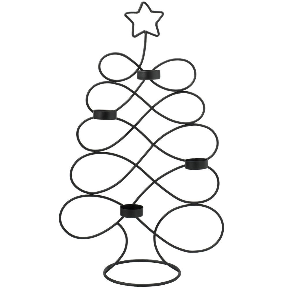 Efektowny świecznik w kształcie choinki na świeczkę tealight. Będzie stanowił wyjątkowy element dekoracyjny w salonie, sypialni oraz jadalni. Świetnie sprawdzi się w okresie Świąt Bożego Narodzenia. Solidnie wykonany, elegancki dodatek do każdego wnętrza. Może również być świetnym pomysłem na prezent. Delikatne światło czterech świec tworzy ciepłą i przytulną atmosferę, idealną na zimowe wieczory.