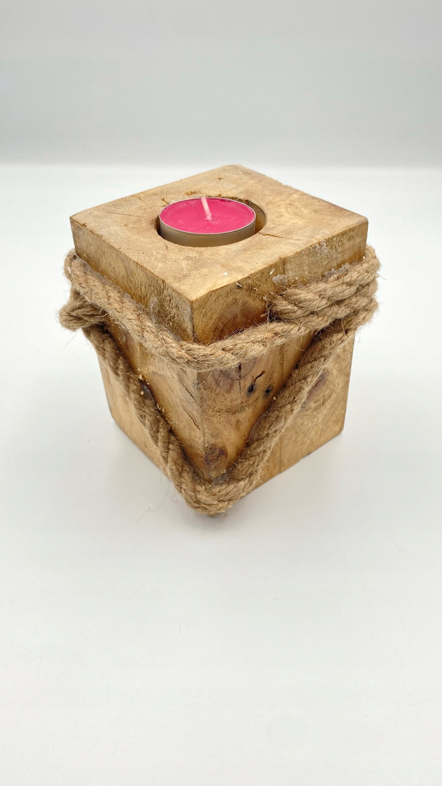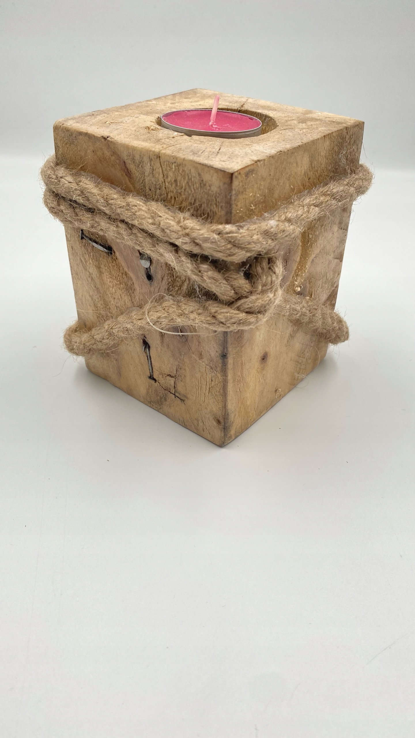 Świecznik to unikatowe dzieło sztuki rzemieślniczej. Świecznik został ręcznie wykonany z drewna "z odzysku".