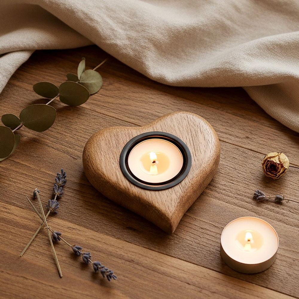Świecznik Drewniany Stojak Podstawka Świeczkę Tealight Stół Serce 10 cm