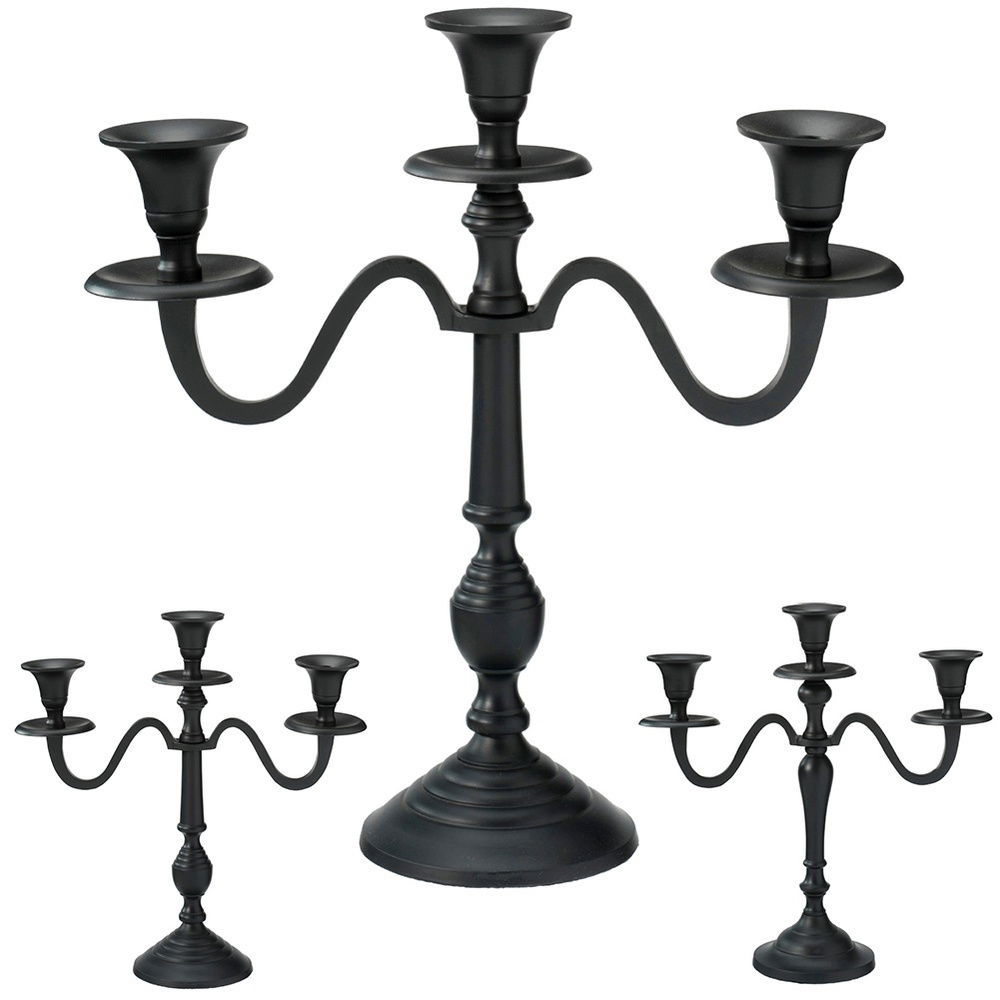Świecznik Kandelabr Czarny Metalowy Stojak 3-ramienny na Świeczki Stół