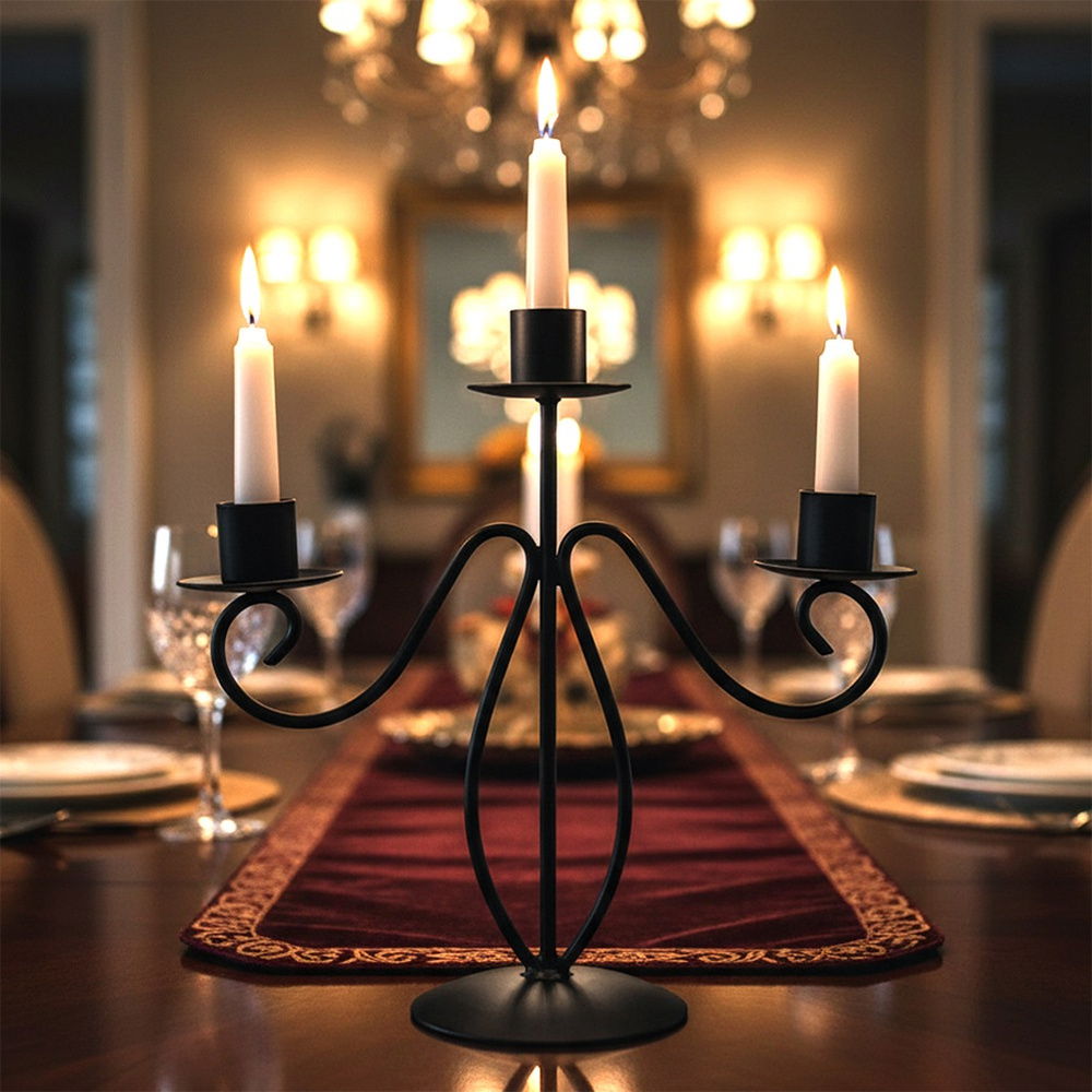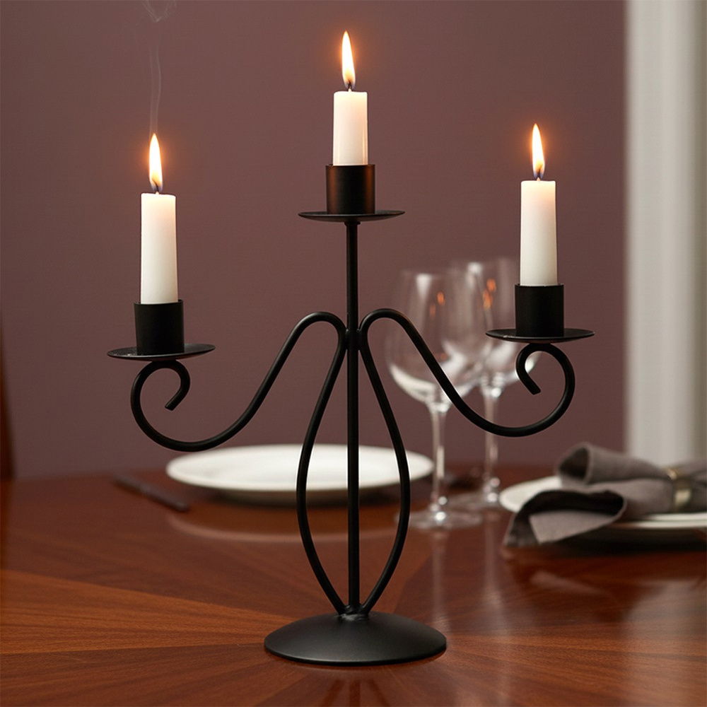 Świecznik Kandelabr Czarny Metalowy Stojak 3-ramienny na Świeczki Stół