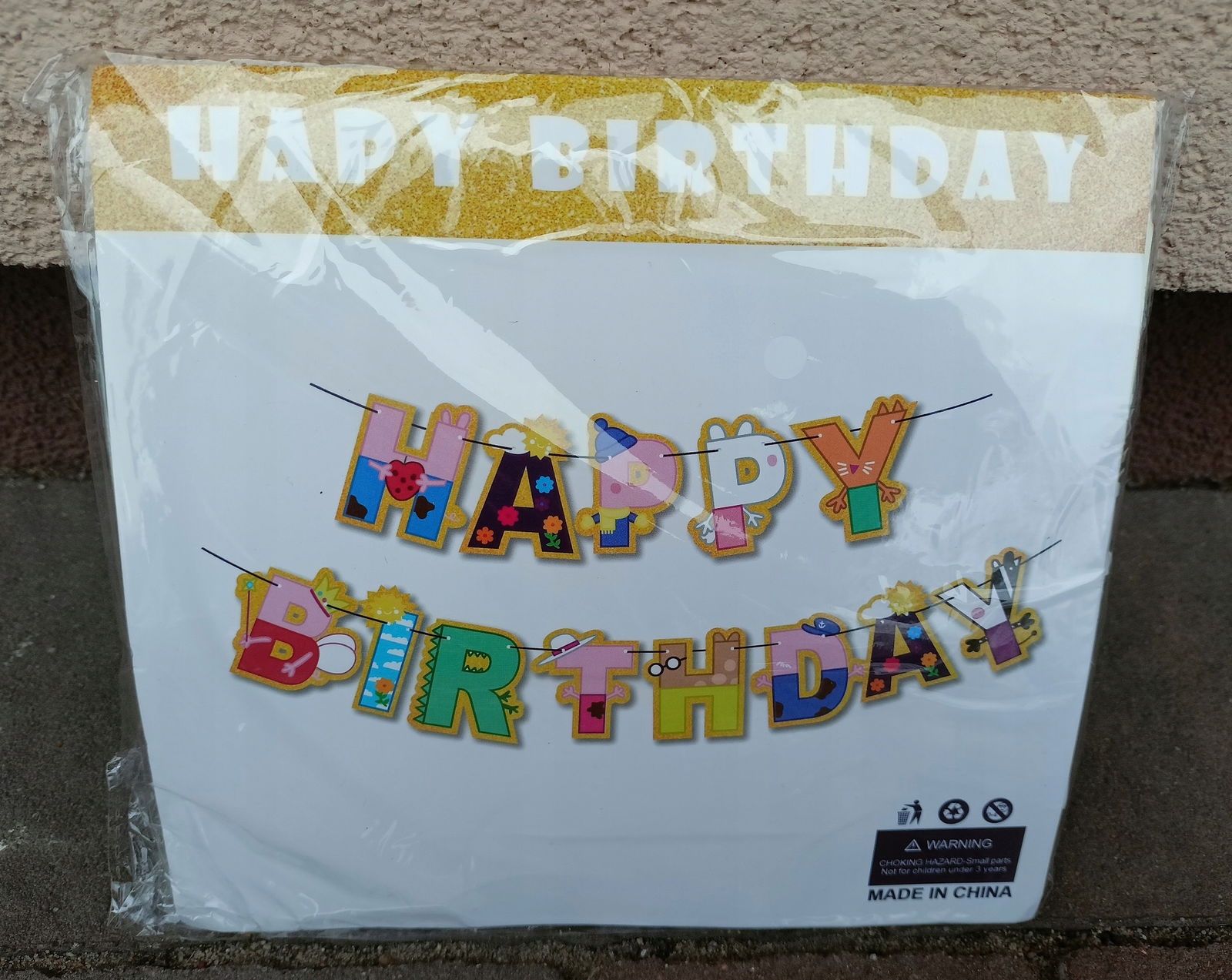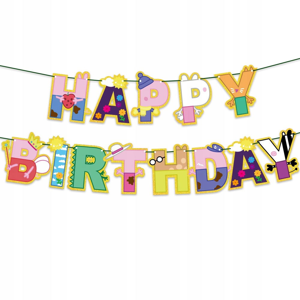 ✅ Girlanda "Happy Birthday" z bajkowymi bohaterami – piękna ozdoba do zawieszenia nad stołem lub w dowolnym miejscu w domu.