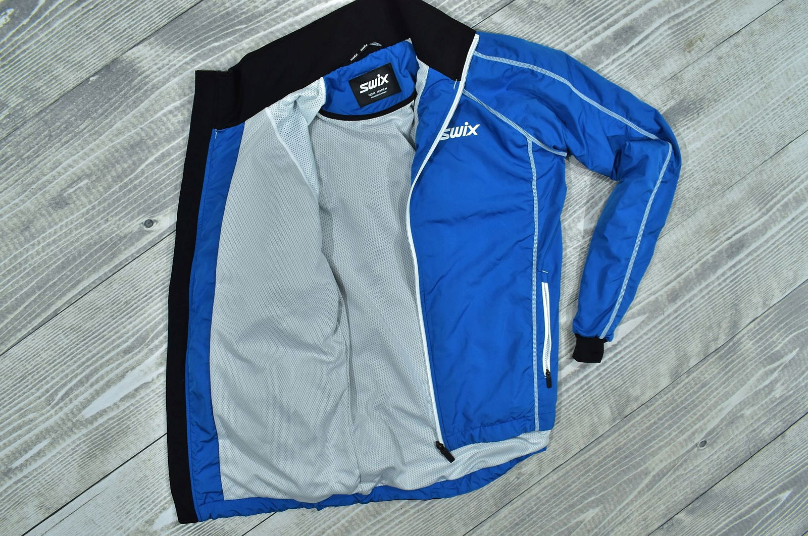 kurtka na całej długości zapinana na suwak, ma profilowany krój torsu i rękawów
