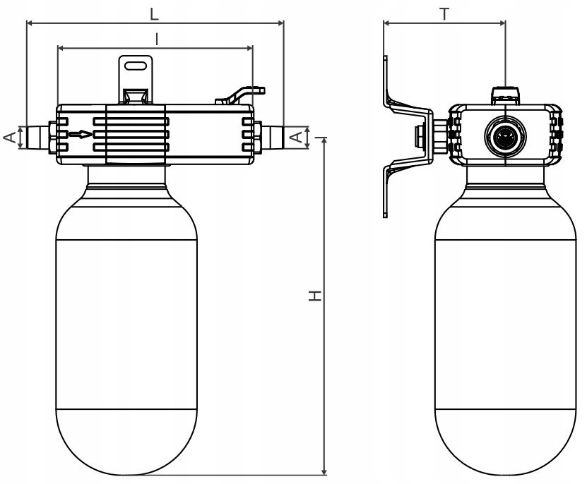 ✔️ Zespół przyłączeniowy 3200 należy zamontować na będącej w komplecie konsoli montażowej - oś główna urządzenia poziomo. Przy zastosowaniu zbiornika z 14, 30 i więcej litrami żywicy, urządzenie powinno stać na równej podłodze i zaleca się zamontować dodatkowy wspornik/uchwyt butli. Dla butli od 14 litrów wzwyż istnieje możliwość zastosowania specjalnego adaptera, ułatwiającego demontaż butli (wyposażenie opcjonalne).