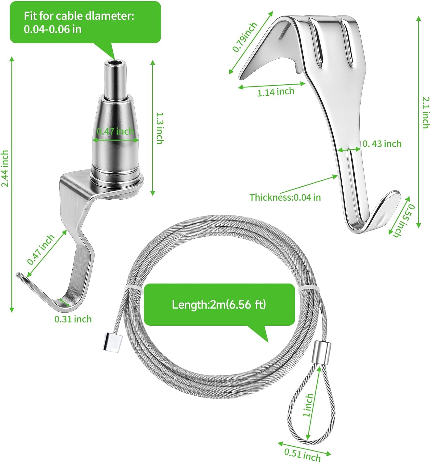 System Galeryjny Zestaw 2m – Linka Stalowa + Haki 40kg (10 elementów) C099
