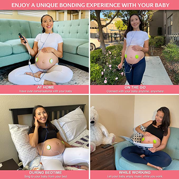 - Bezpieczny i nieinwazyjny: Głośniczki przyklejane do brzucha wykorzystują bezpieczną technologię ciśnienia akustycznego. Urządzenie posiada regulację głośności i wbudowany ogranicznik amplitudy, by bezpiecznie odtwarzać dźwięki Twojemu dziecku. Maksymalna głośność jest podobna do głosu matki i ojca mówiących do dziecka znajdującego się w łonie matki.