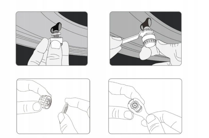 Wystarczy przykręcić czujniki do wentyli opon. Nie jest wymagana wizyta w warsztacie — montaż zajmuje mniej niż minutę.