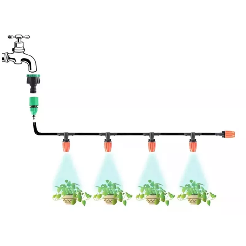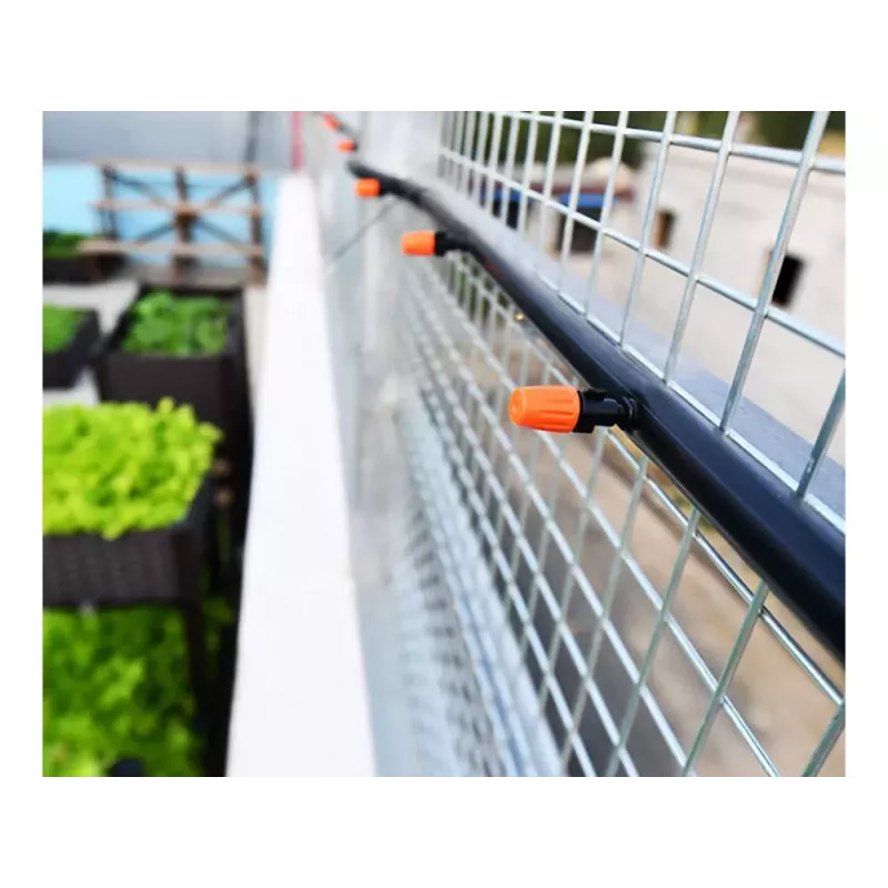 Wystarczy podłączyć kabel z wodą i system nawadniania automatycznie uruchomi się i rozpocznie zraszanie. Nie zużywa energii elektrycznej.