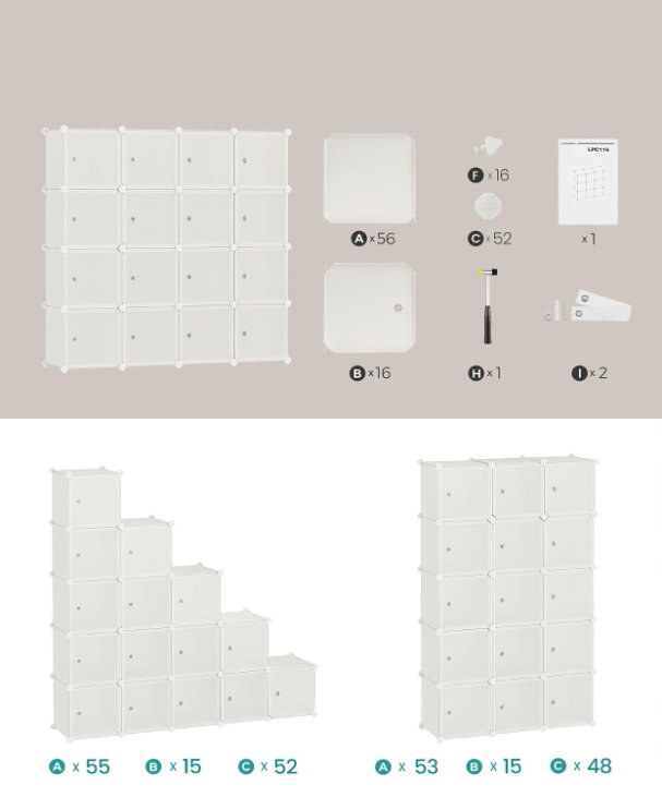 - ✴️[Montaż jest dziecinnie prosty] W porównaniu z tym, montaż naszej modułowej szafy jest jeszcze przyjemniejszy i łatwiejszy; dzięki dołączonemu gumowemu młotkowi i ilustrowanym instrukcjom możesz rozstawić regał w 30 minut lub nawet krócej – jakie poczucie spełnienia!