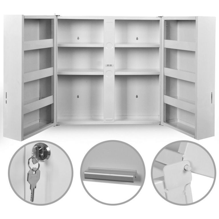 Dzięki tej apteczce ze stalowymi przegródkami możesz bezpiecznie umieścić wszystkie produkty pierwszej pomocy i zablokować je zamkiem drzwi. Zapobiega to manipulowaniu treścią bez klucza. Ten aspekt jest szczególnie ważny dla bezpieczeństwa dzieci w gospodarstwie domowym, ponieważ daje gwarancję, że nie wystąpią nieprzewidziane zdarzenia. Dodatkowo szafkę tę można ustawić na żądanej wysokości w łazience, przedpokoju czy innym pomieszczeniu, gdyż montaż naścienny jest bardzo łatwy.