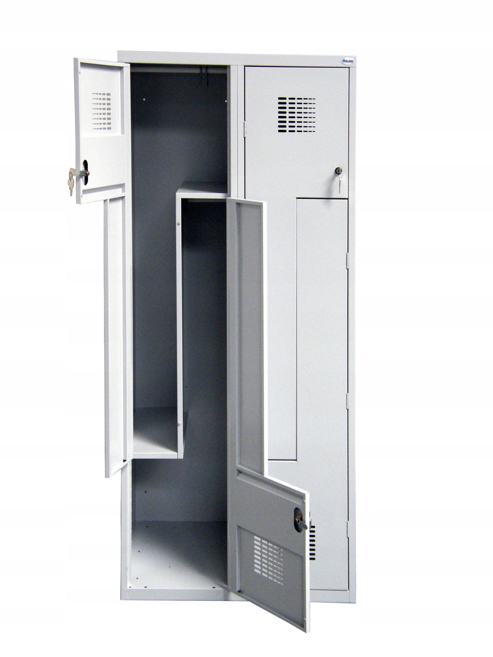 Polecamy szafę metalową 60x50x180 typu L produkcji polskiej. Szafa o funkcjonalnym i estetycznym wyglądzie. Szafa socjalna jest wyposażona w drążek ubraniowy z 2 haczykami. Samoprzylepny plastikowy wizytownik. Drzwi szafy posiadają wentylację o nowoczesnym wyglądzie. Szafa socjalna wykonana z blachy 0,5 mm. Wyposażona w zamek cylindryczny zamykany w jednym punkcie.