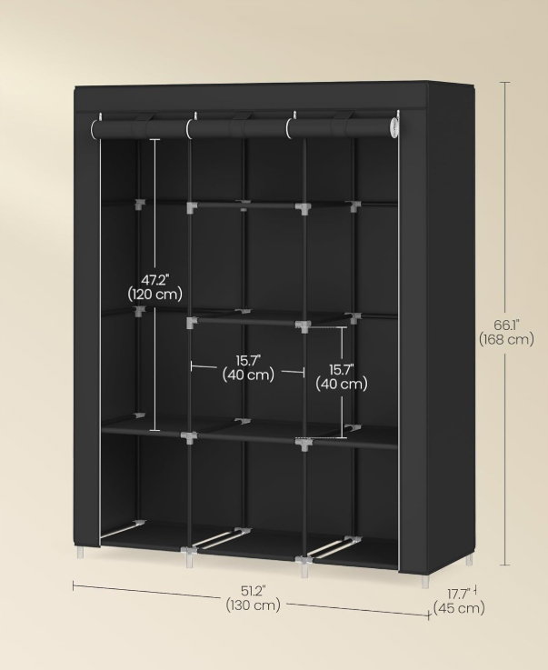 - ✴️【WSZECHSTRONNE OPCJE USTAWIENIA】Ta przenośna szafa o wymiarach 45 x 130 x 168 cm może być umieszczona w salonie, garderobie lub sypialni, dzięki czemu każda przestrzeń pozostanie uporządkowana i zorganizowana.