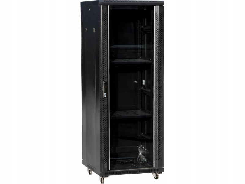 Szafa teleinformatyczna 19" 42U 600x800, drzwi przednie szklane, drzwi tylne stalowe pełne, zamek, 4 belki nośne, 4 regulowane stopki, do samodzielnego montażu, kolor czarny Q-LANTEC - Q-LANTEC