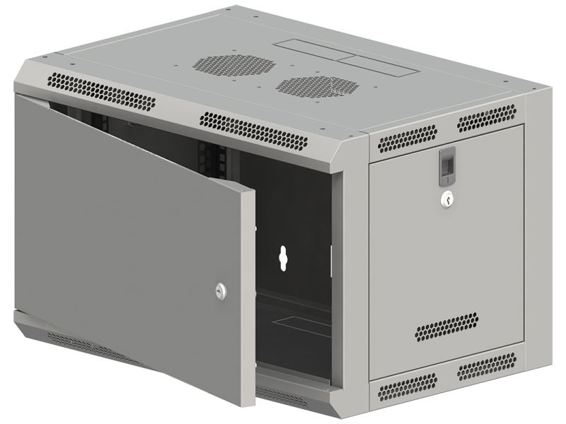Szafy wisząco-stojące 19" do samodzielnego montażu, przeznaczone do zastosowań wewnątrz pomieszczeń, dostępne w 3 głębokościach i 6 wysokościach użytkowych, ze szklanymi drzwiami.