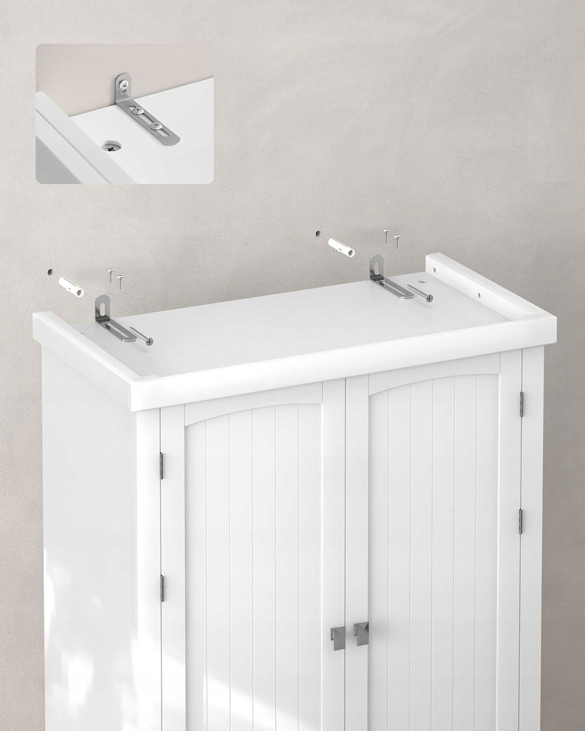 - Stabilna i trwała: wysokiej jakości płyty MDF, 3 zawiasy do podtrzymywania górnych drzwi szafek - wielofunkcyjna szafka jest trwała. Dzięki dołączonej ochronie przed przechyleniem możesz bezpiecznie przymocować szafkę do przechowywania do ściany