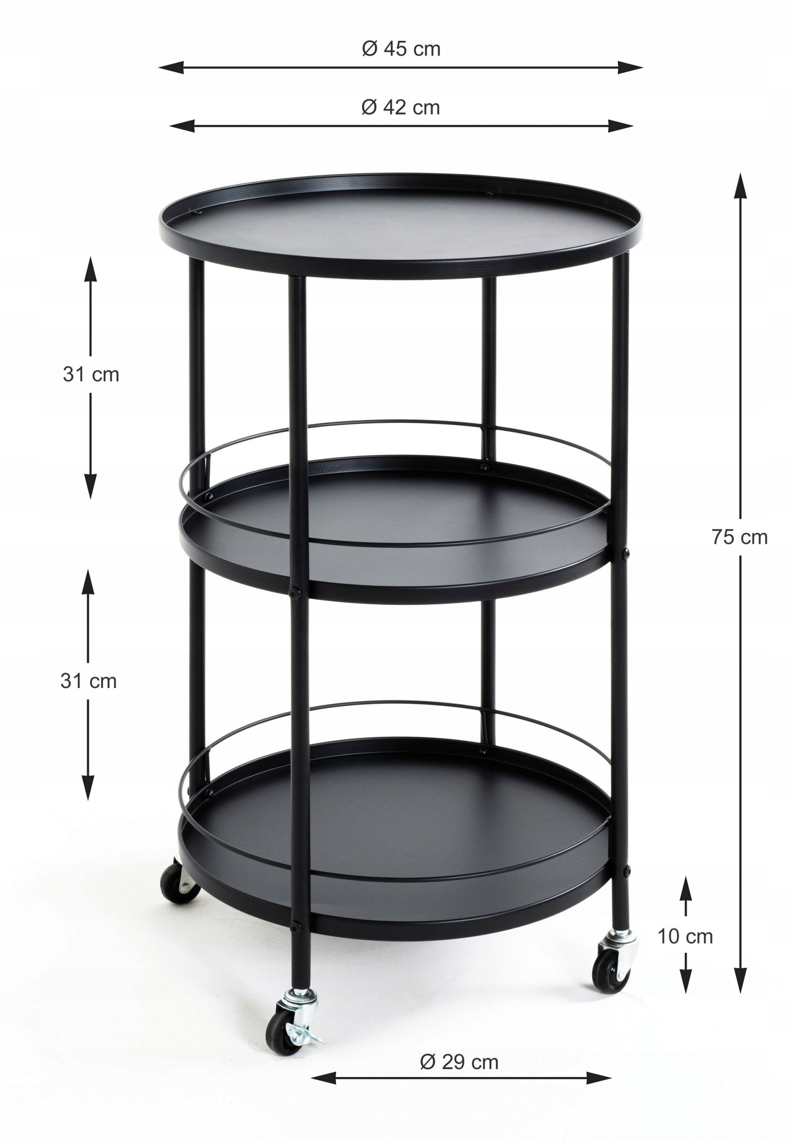 Wózek w całości wykonany z metalu, lakierowany na czarno.