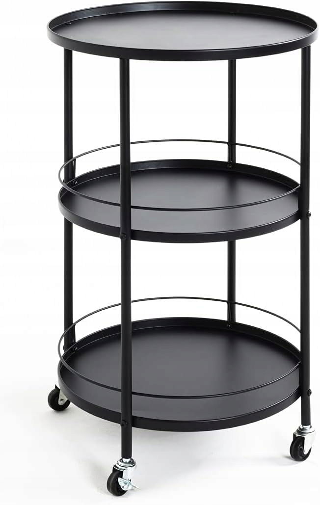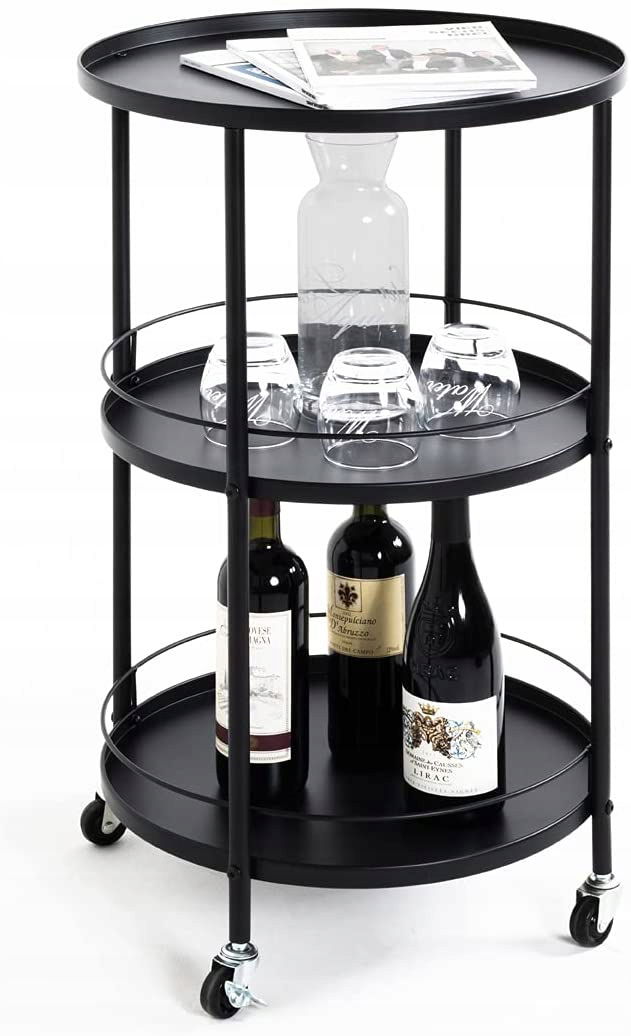 Solidny solik barowy, wózek do serwowania na kółkach, 3 półki, czarny