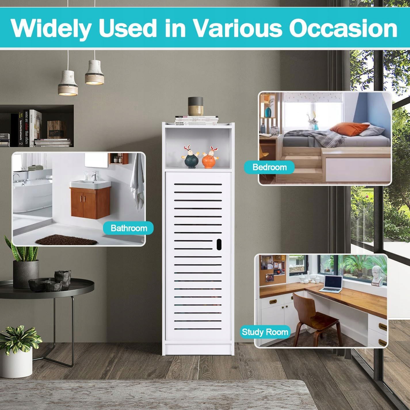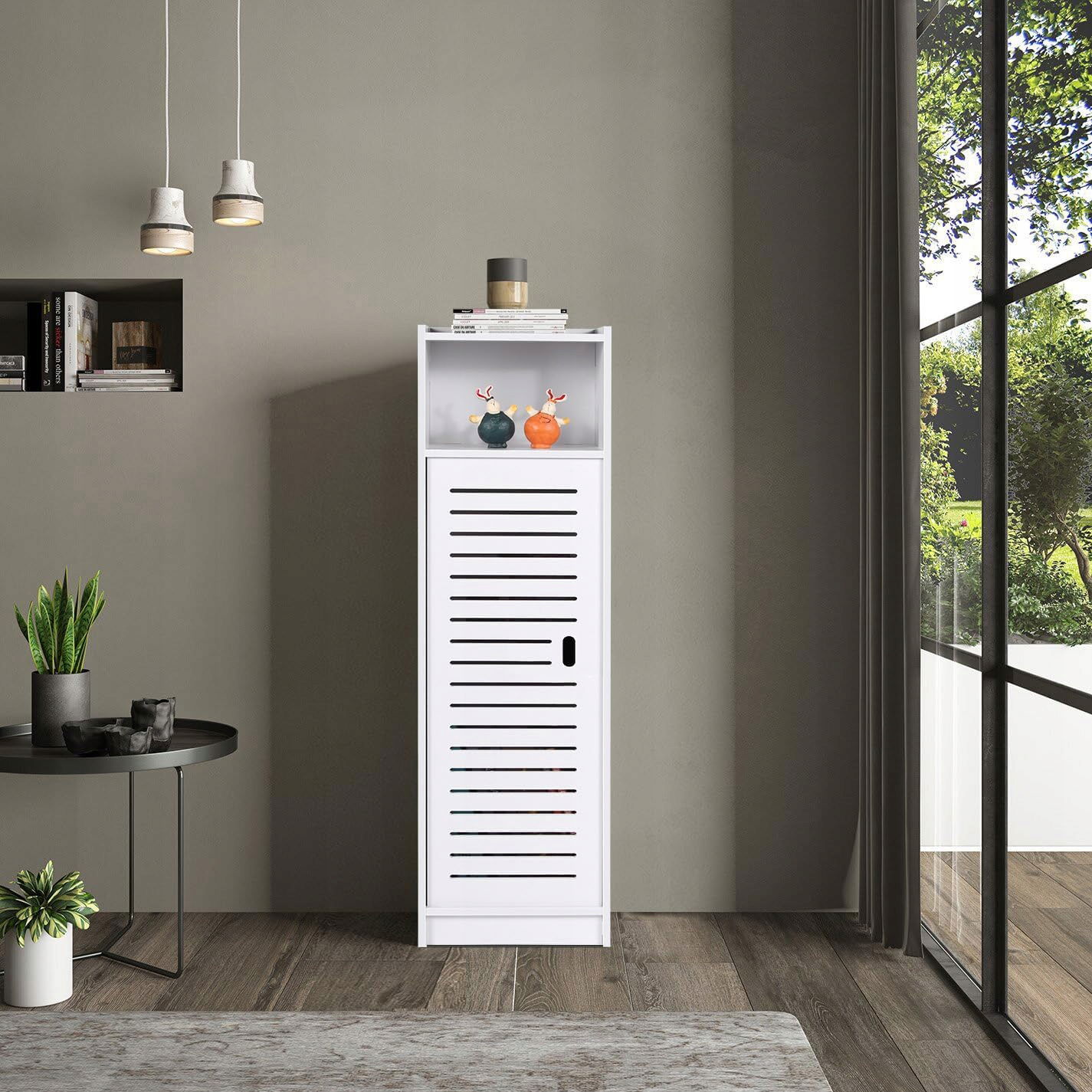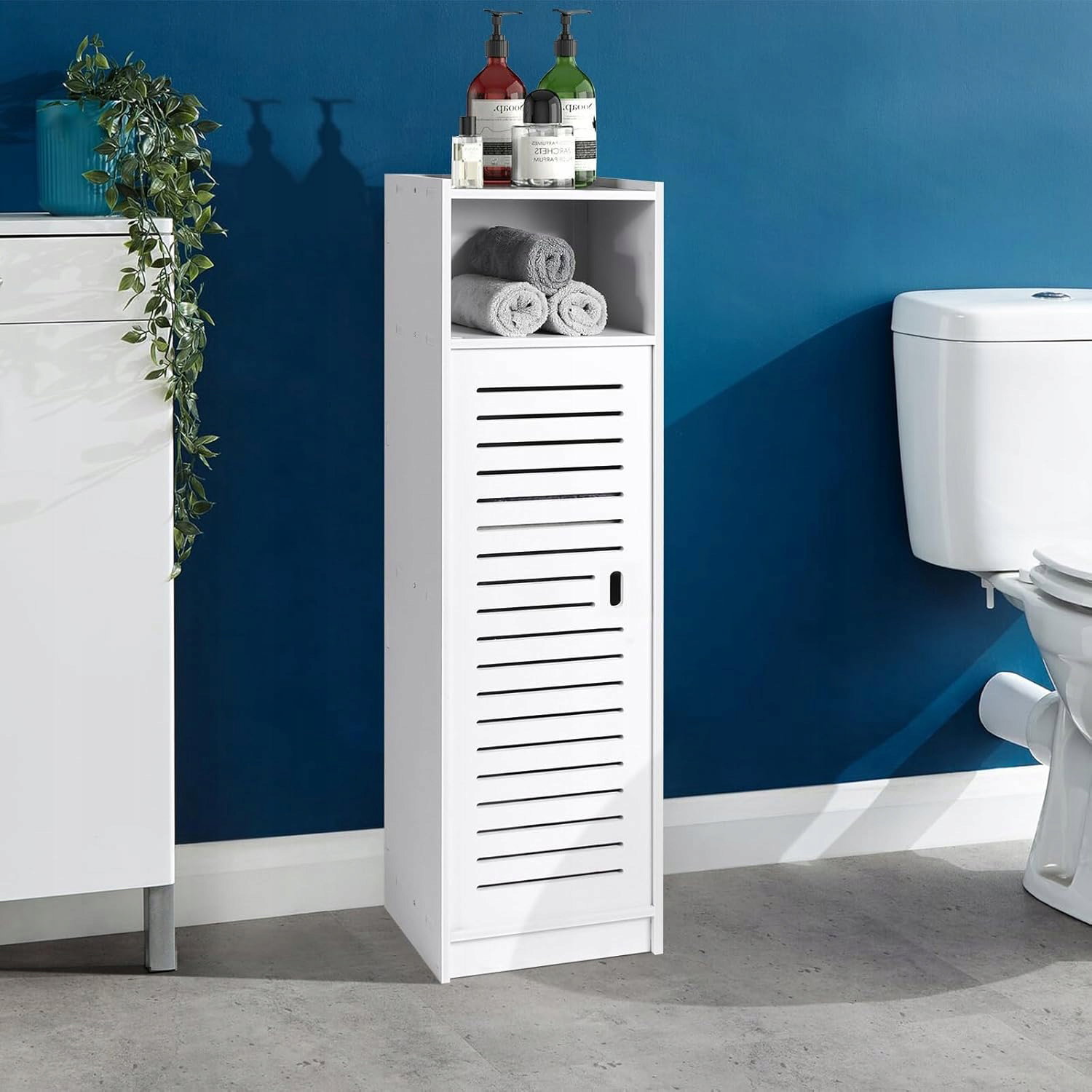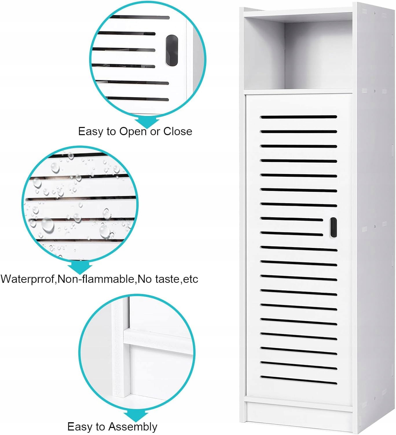 Ulepsz swoją łazienkę dzięki tej wodoodpornej szafce firmy Aimu. Wykonany z wysokiej jakości materiału PCW, został zaprojektowany tak, aby wytrzymać wilgoć, gnicie i wilgoć, zapewniając trwałość i praktyczność. Szafka o wymiarach 80 x 20 x 24 cm zapewnia dużą pojemność, idealna do przechowywania codziennych niezbędnych rzeczy i utrzymania porządku w przestrzeni. Szafka jest łatwa w montażu bez użycia narzędzi, jest wyposażona w pełne mocowania i instrukcje. Ten wszechstronny element nadaje się nie tylko do łazienek, ale także do kuchni, korytarzy i sypialni. Przed zakupem należy sprawdzić rozmiar. Posiada styl drzwi okiennych, jedne drzwi, jedną półkę i trzy przegrody, zapewniając dużo miejsca do przechowywania. Szafka jest wolnostojąca i może wytrzymać obciążenie do 35 kg. Dzięki białemu kolorowi i prostokątnemu kształtowi ta szafka jest eleganckim i funkcjonalnym dodatkiem do każdego pomieszczenia.