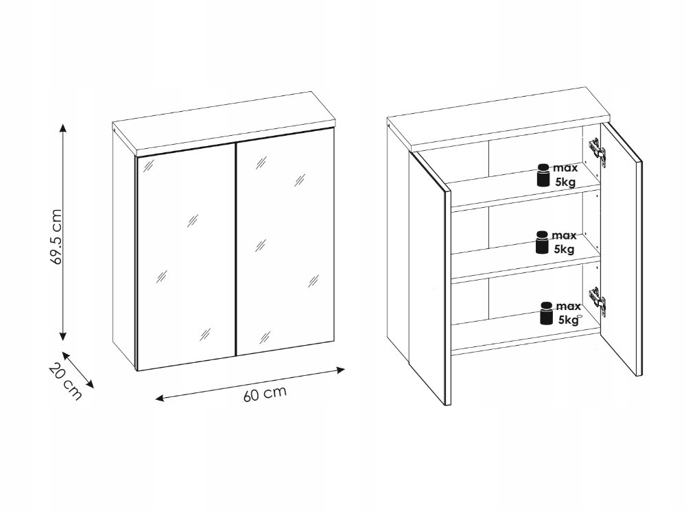 Szafka łazienkowa BALI GRAFIT 840 z lustrem 60 cm