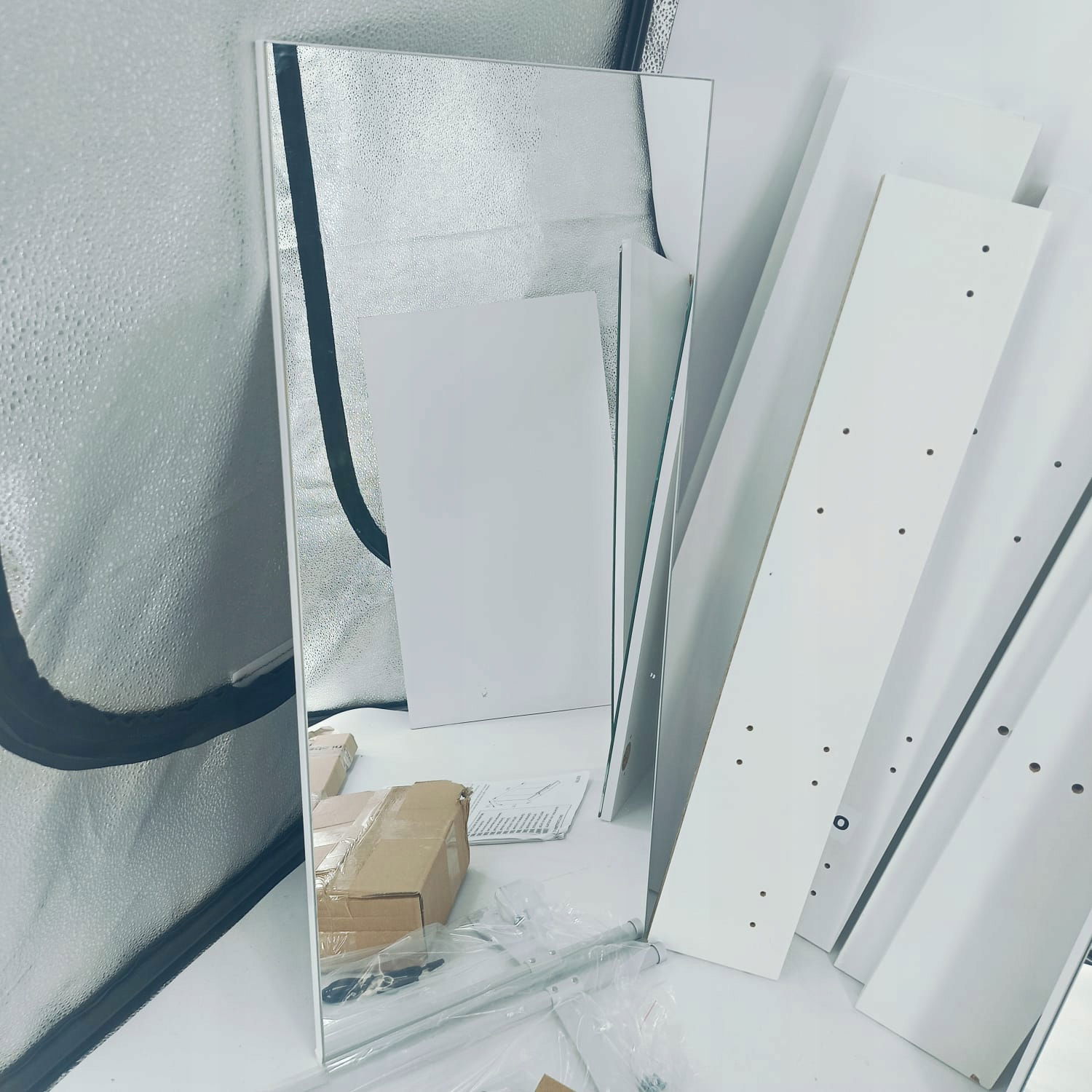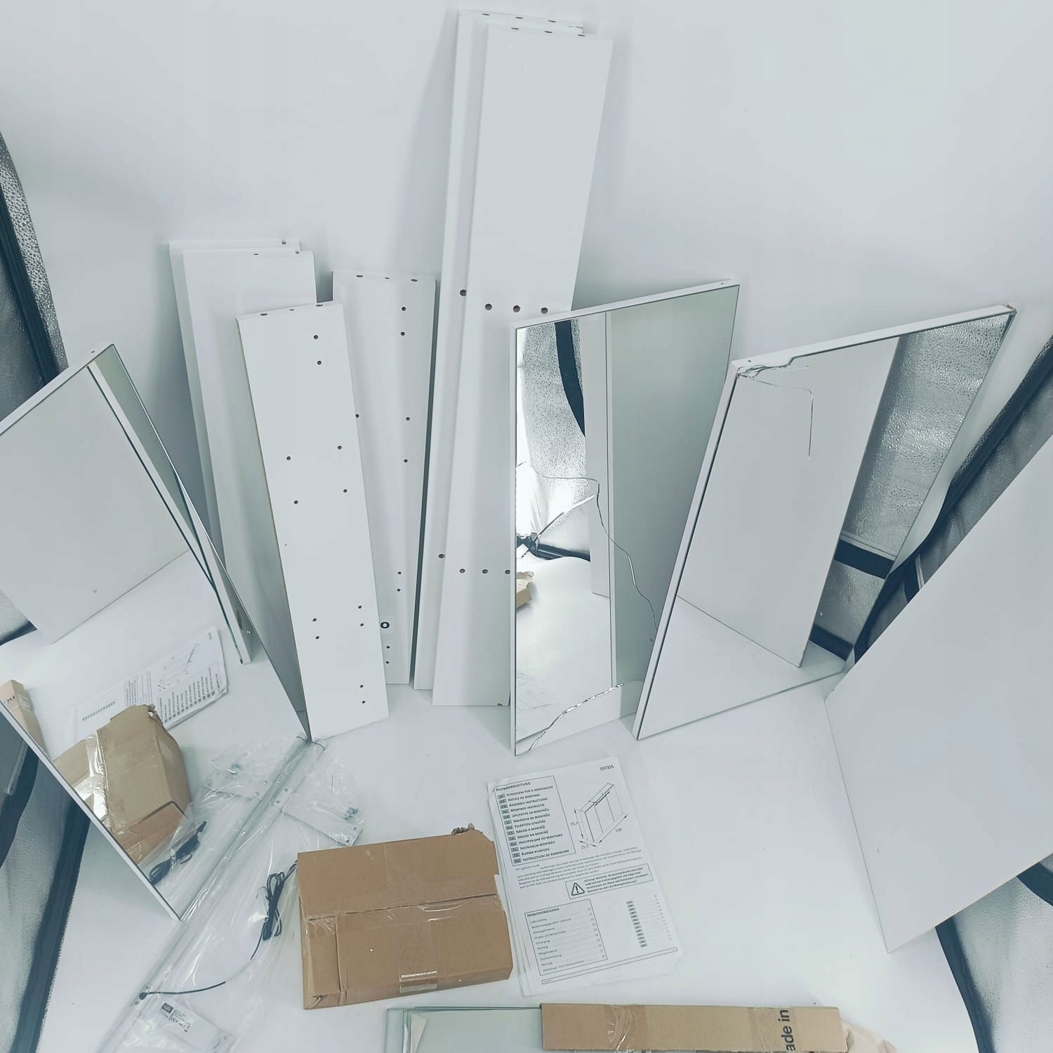 STAN: Uszkodzone w transporcie jak na zdjęciach. Uszkodzeniu uległy 2 lustra. Myślę, że bez problemu do dorobienia u szklarza. Na tylnej dykcie przetarcia . Możliwe że jest jeszcze uszkodzenie które nie zostało uwzględnione jednak najważniejsze są opisane.