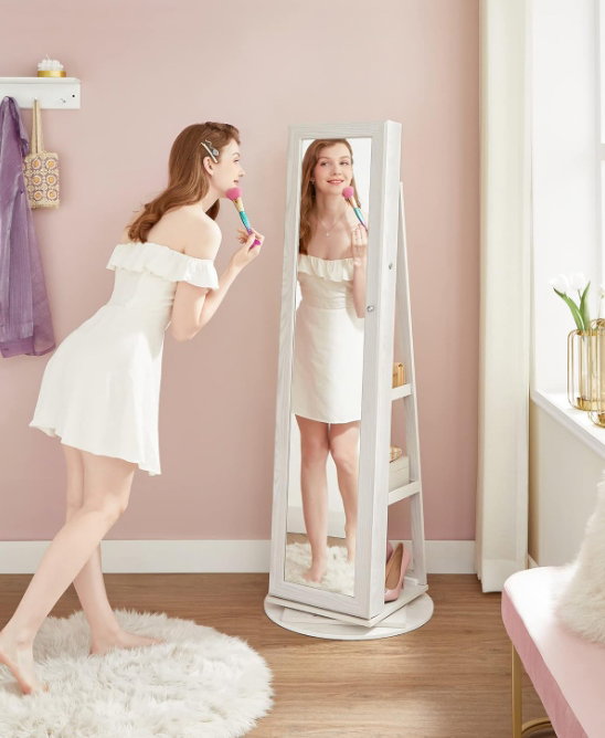 Szafka na biżuterię Szafka z lustrem 360, z zamkiem 3 w 1 SONGMICS JBC62W