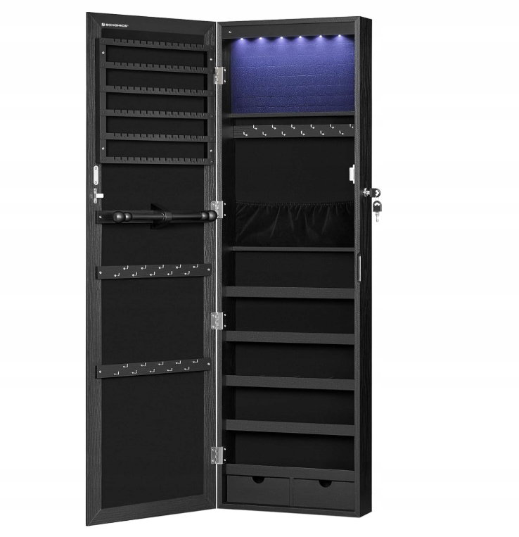 Szafka na biżuterię wisząca zamykana szafka z lustrem SONGMICS JJC093B01