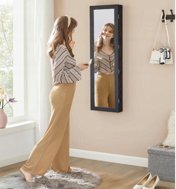 - ✴️Drzwi czy ściana? Wystarczy zawiesić tę szafkę z lustrem na ramie drzwi w sypialni lub łazience za pomocą dołączonych haczyków. Oczywiście szafkę na biżuterię można również przymocować do solidnej ściany za pomocą dołączonych śrub.