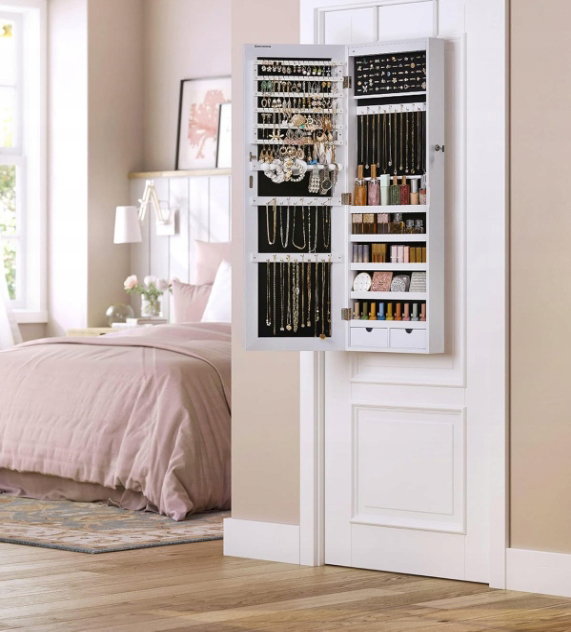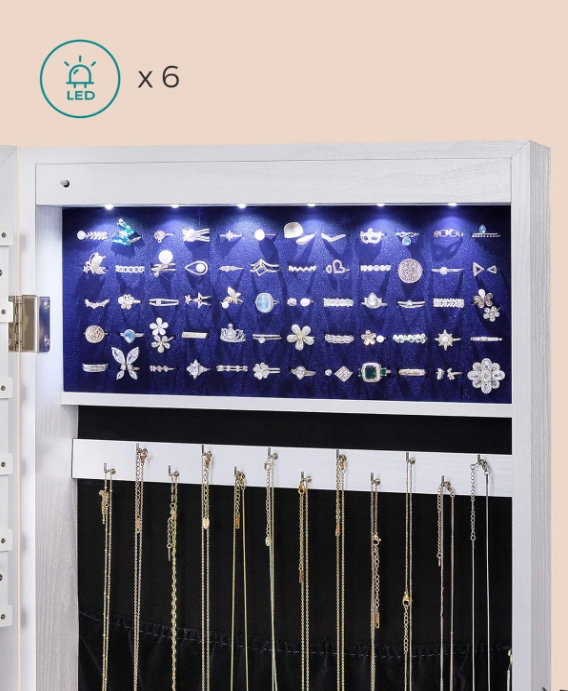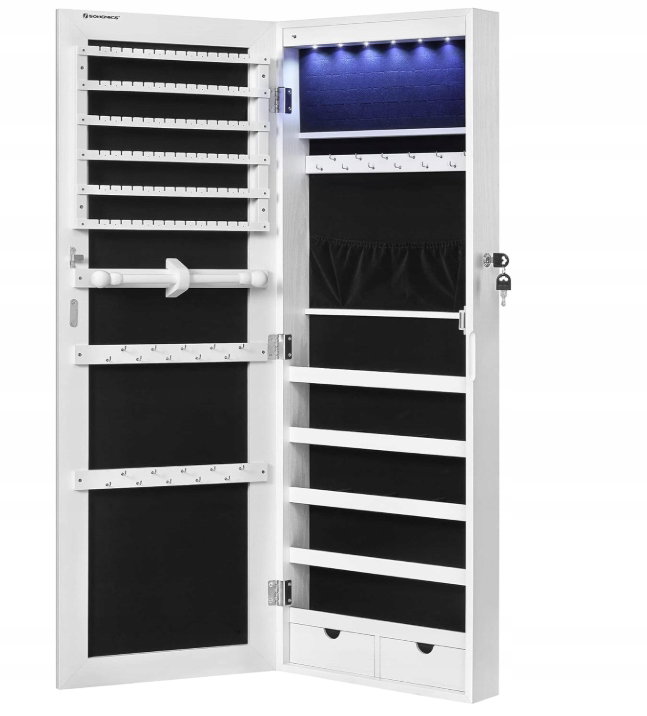 Szafka na biżuterię z długim lustrem LED SONGMICS JJC99WT