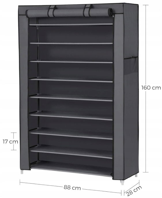 Czy Twoje buty leżą rozproszone na podłodze? W takim razie na pewno marzą o własnym domu, który zapewnia Ci lepszą ochronę. Oto regał na buty firmy Songmics. Pokrowiec z materiału jest wyposażony w zamek błyskawiczny i zapięcia na rzepy, co ułatwia przechowywanie butów