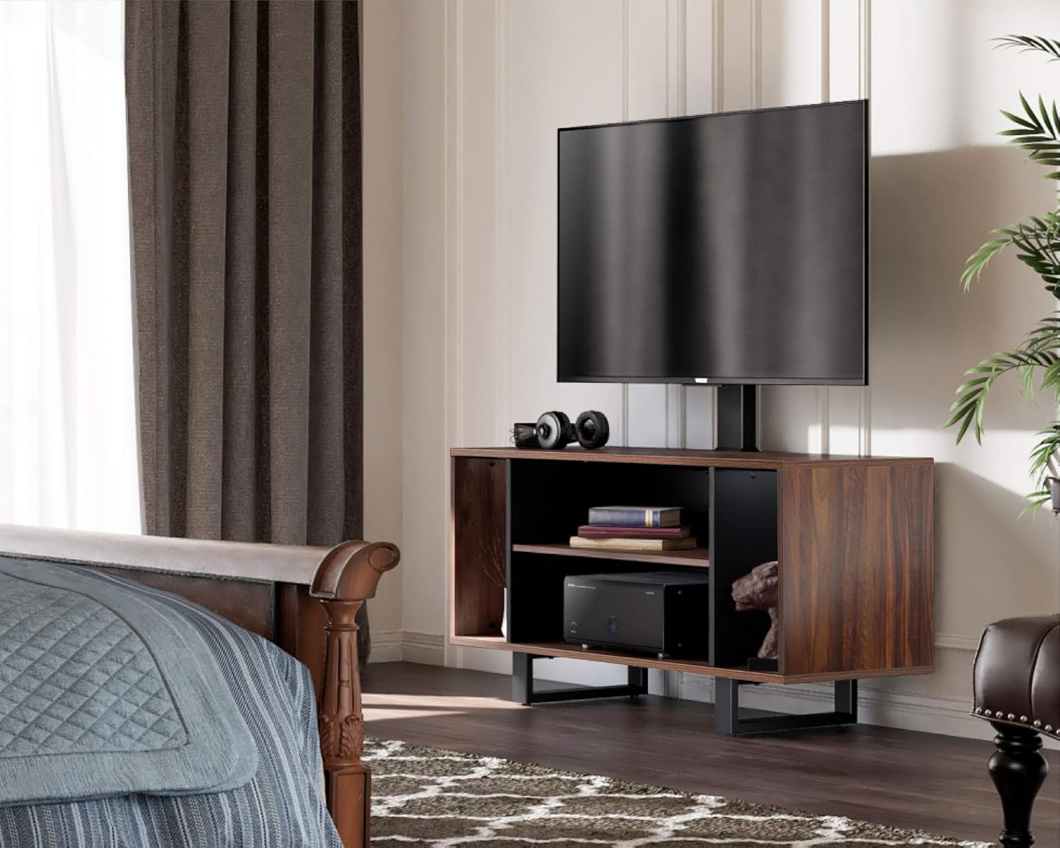 Eleganckie wykończenie z orzecha włoskiego i regulowana wysokość sprawiają, że szafka pod telewizor FITUEYES jest stylowym i elastycznym dodatkiem do każdego salonu, mieszczącym różne rozmiary telewizorów od 32 do 55 cali.
