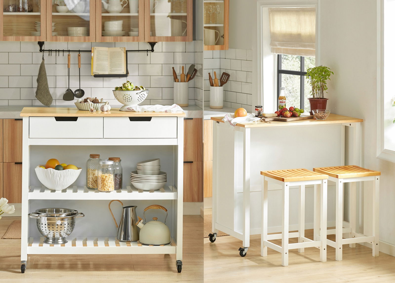 Ta wyspa kuchenna na kółkach to nie tylko praktyczne rozwiązanie, ale również stylowy element wystroju kuchni.