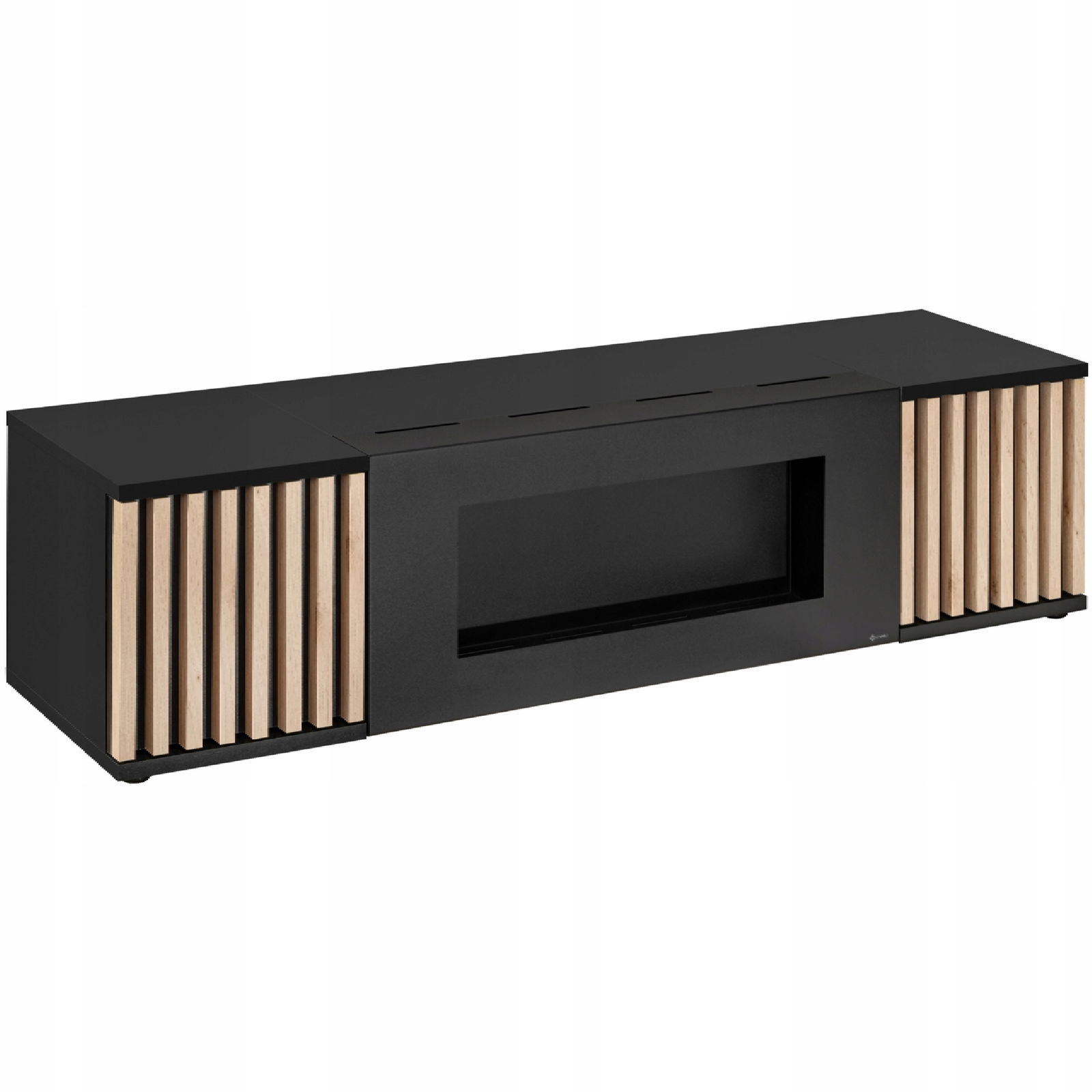 Szafka RTV CAMERON z biokominkiem | lamele HICKORY JACKSON + Czarny | 163cm