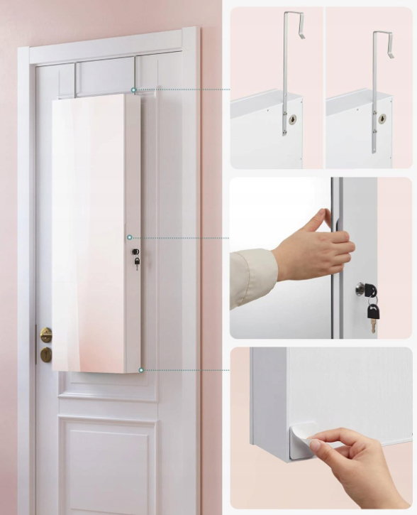 - ✴️Wstępnie zmontowana i zamykana: szafka na biżuterię jest już wstępnie zmontowana, wystarczy powiesić ją na ścianie lub drzwiach. Ponadto szafka zamyka się, aby chronić biżuterię przed niemądrymi dziećmi