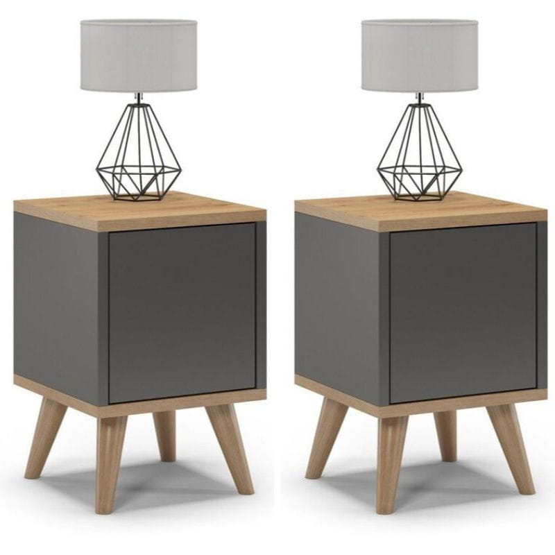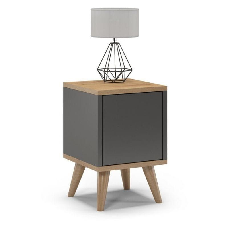 Szafki nocne na nóżkach, zamknięte, SKAND, 30x30x45 cm, grafit, dąb, mat