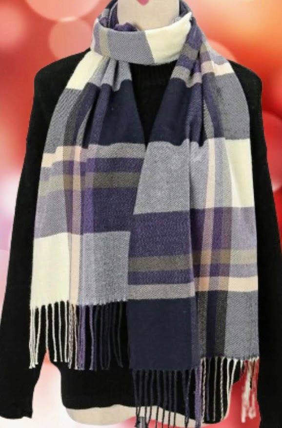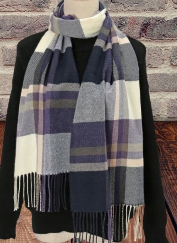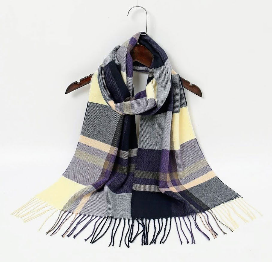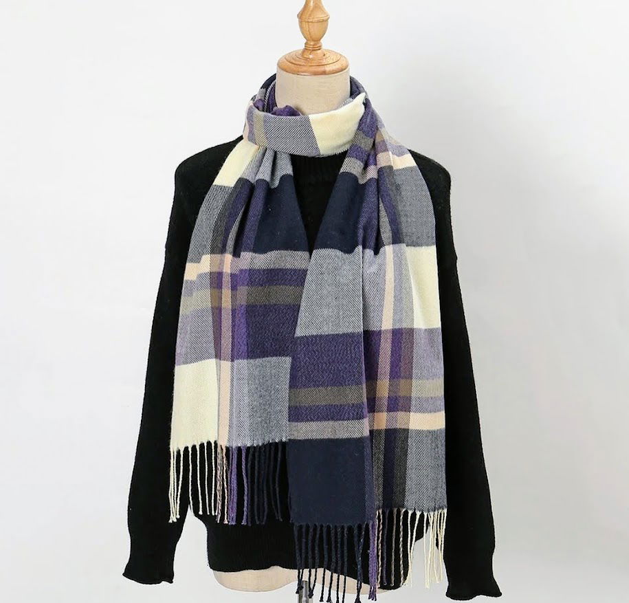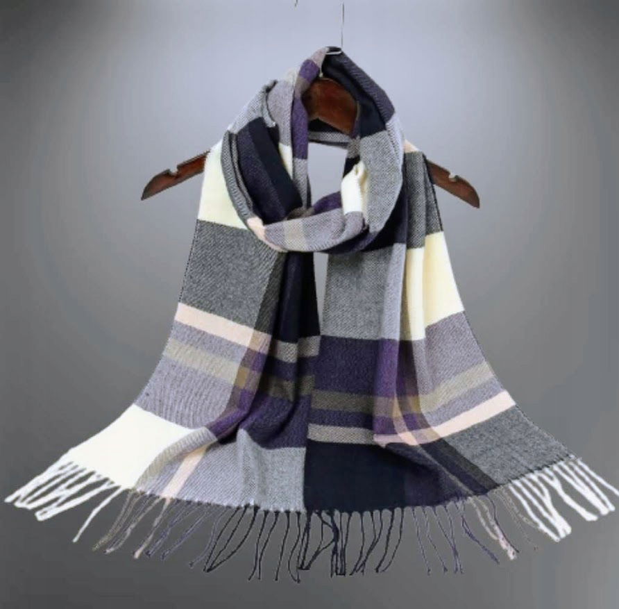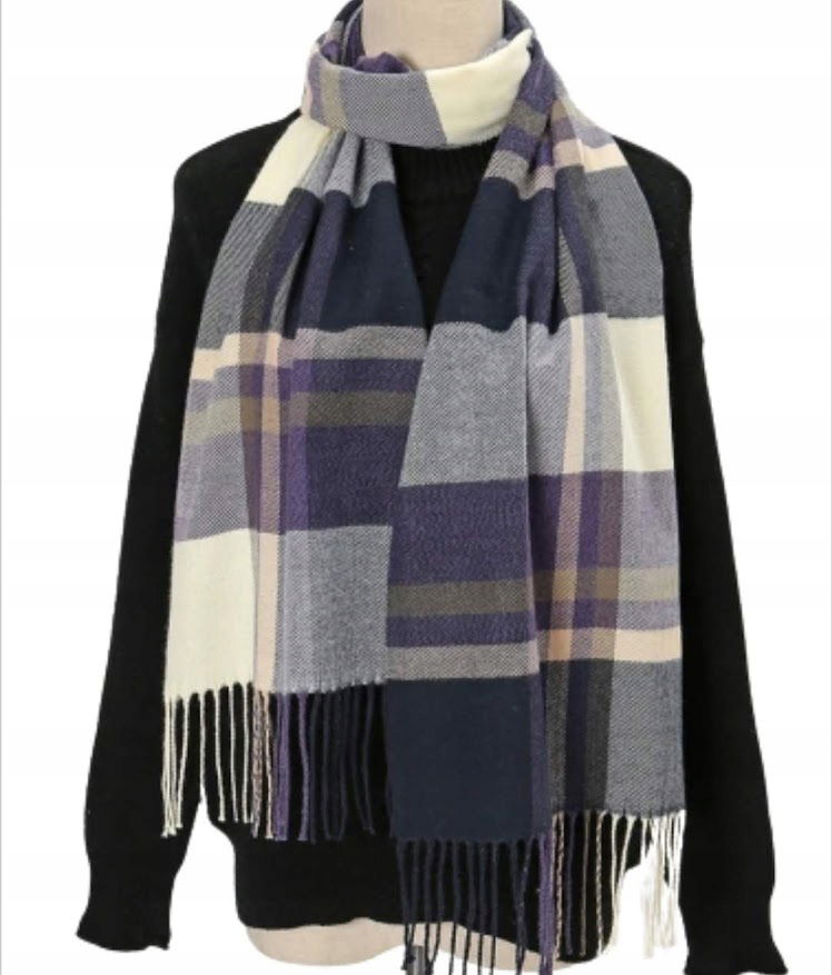Szalik damski szal sztuczny kaszmir z frędzlami modna krata 190cm
