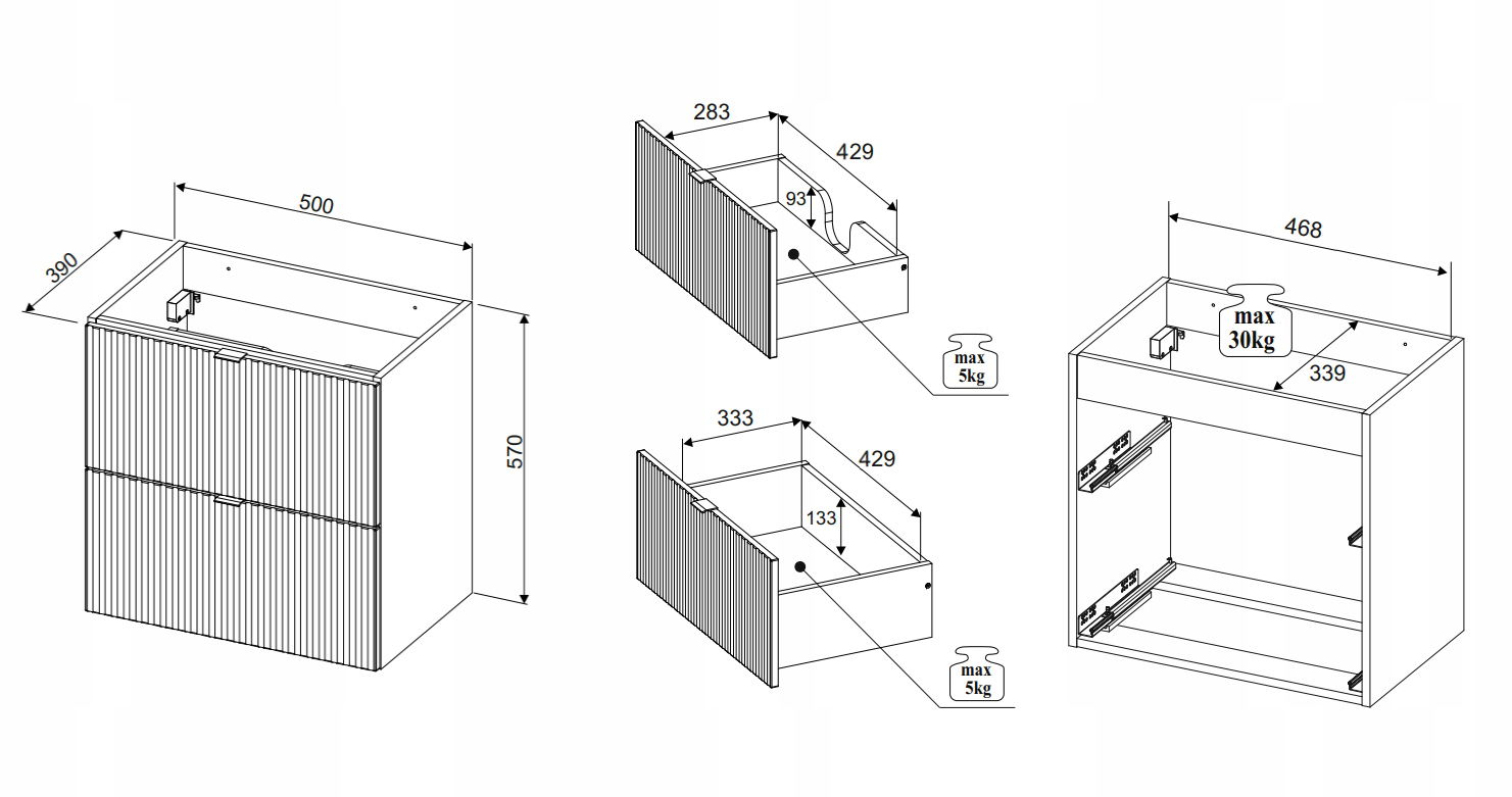Szafka pod umywalkę LINE REED GREEN 82-50-2S - wnętrze: