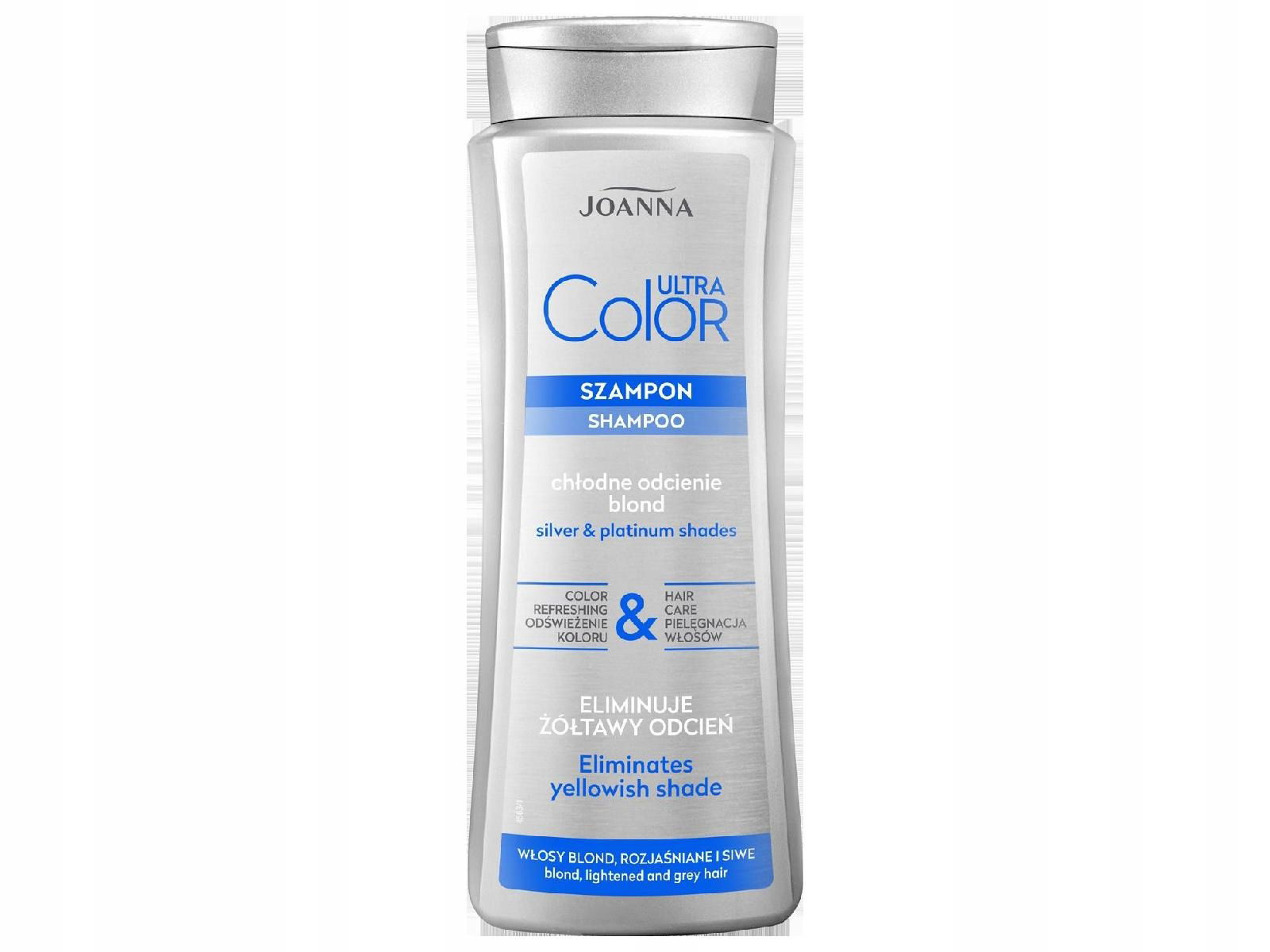 Linia szamponów Joanna Color Ultra. Przeznaczona do pielęgnacji włosów blond, rozjaśnionych i siwych. Eliminuje żółtawy odcień, nadając włosom chłodny, platynowy. Zapewnia odświeżenie koloru i pielęgnację włosów. Do codziennego stosowania. Systematyczne  stosowanie kosmetyku pogłębia intensywność odcienia.
