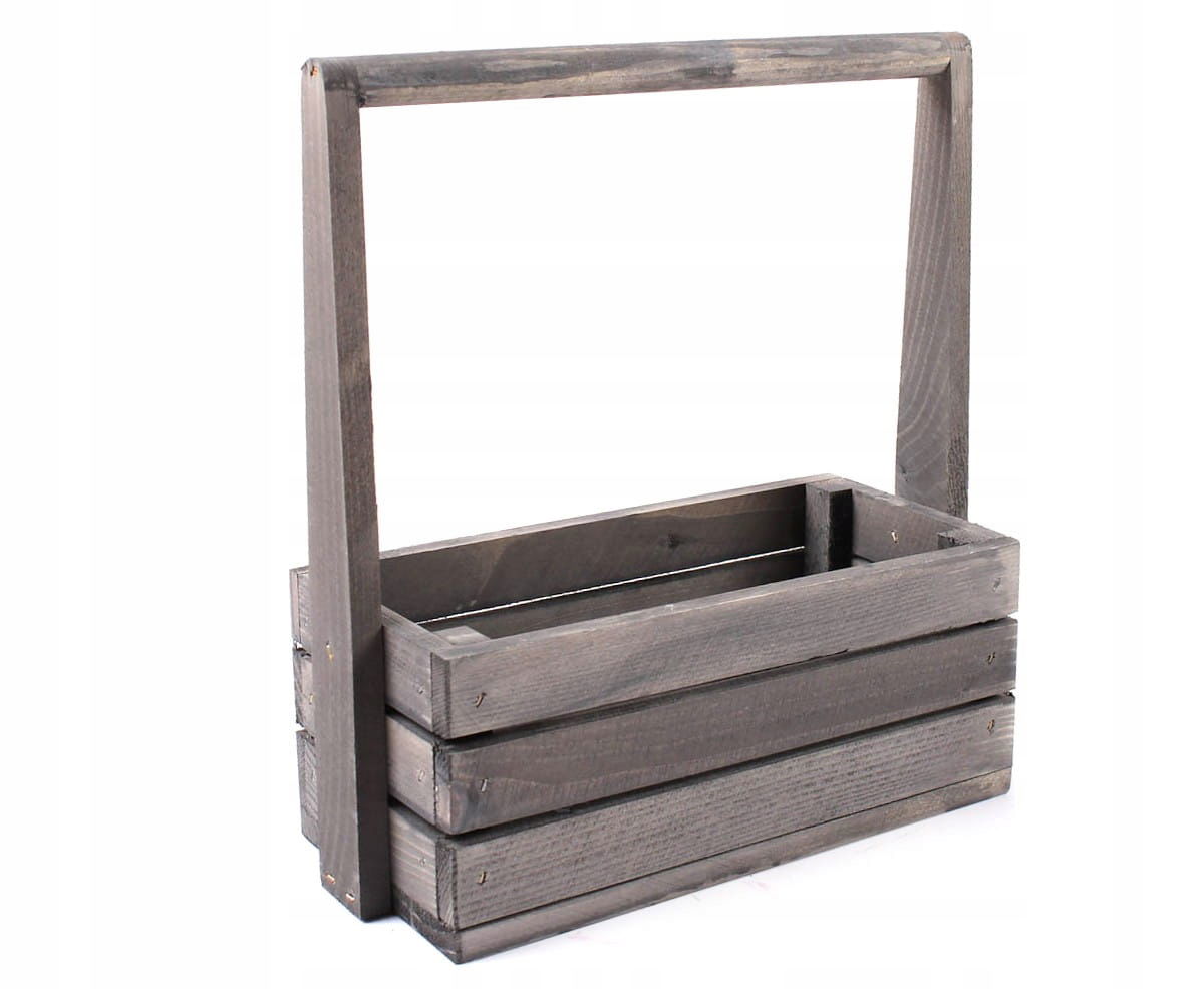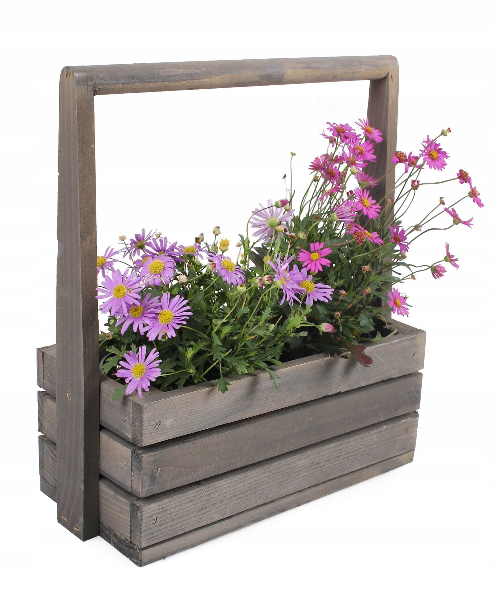 Szukasz sposobu na to, żeby ładnie wyeksponować swoje ulubione rośliny? Drewniana skrzynka z pałąkiem będzie idealna! Możesz włożyć do niej praktycznie każdy mniejszy kwiatek czy chociażby świeże zioła takie jak: bazylię lub tymianek. Szary kolor skrzynki podkreśli różnobarwność rośliny oraz zieleń jej liści i łodyg