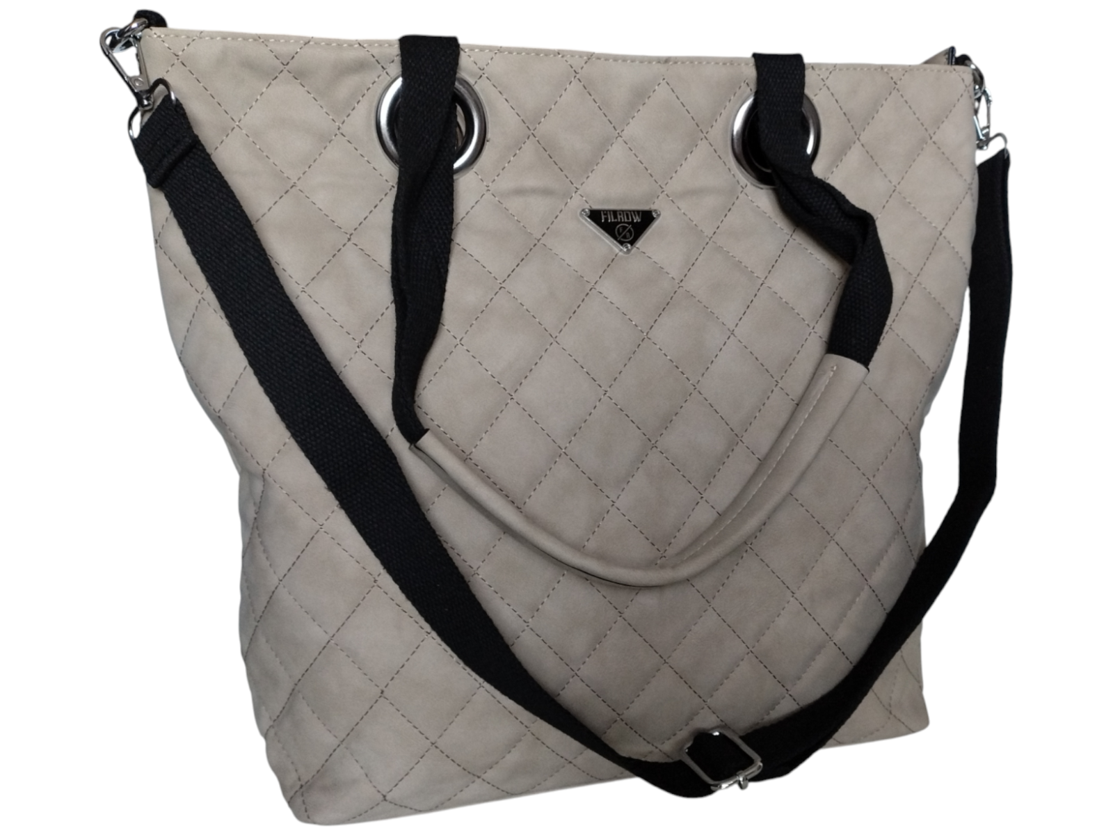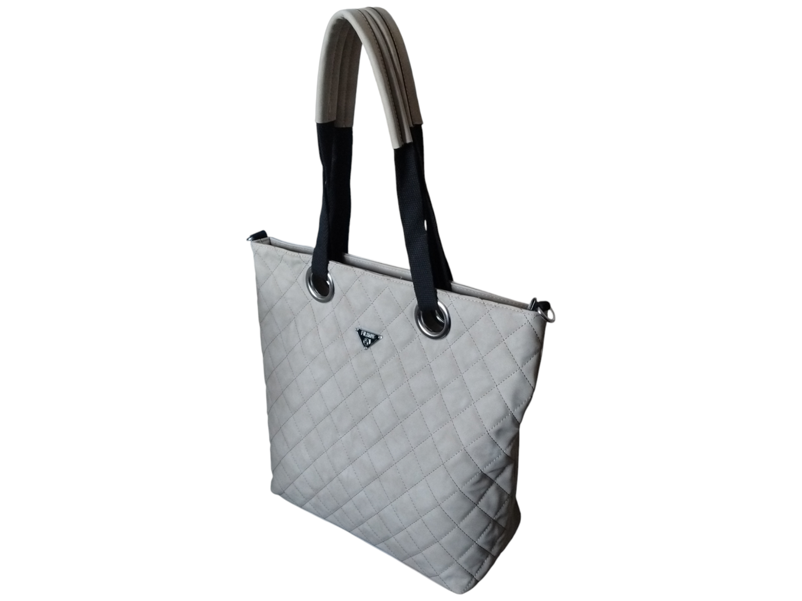 Szara Torebka Shopper Pikowana Damska Na Ramię Duża Pojemna A4