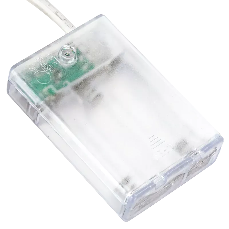 Lampki choinkowe zasilane z 3 baterii AA, 2 metrowa czerwona wstęga z 20 białymi ciepłymi diodami led. Zestaw można zamontować praktycznie wszędzie, gdyż komplet jest niezależny od gniazdek energetycznych. Posiada klasę szczelności IP20 i nie mogą być na dworze. Zasilanie z baterii daje nam poczucie bezpieczeństwa gdy powiesimy je w pokoju dziecięcym.