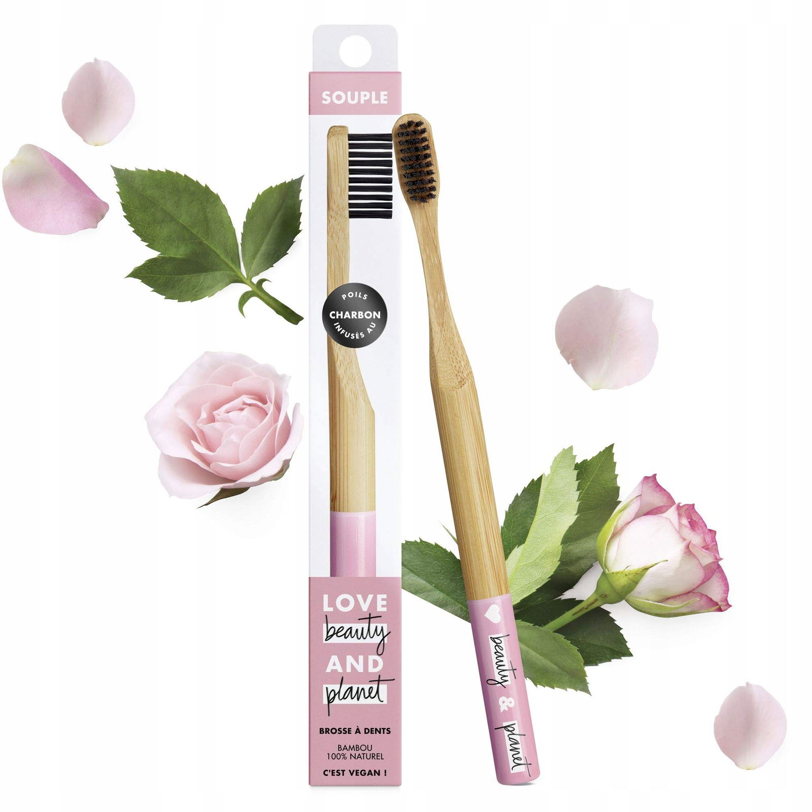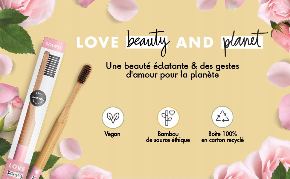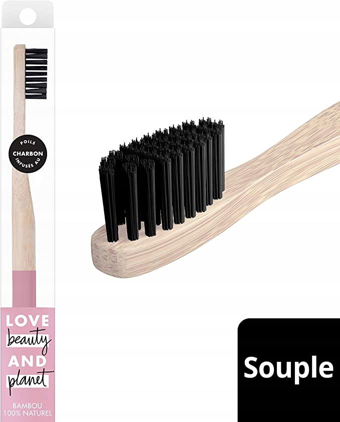 Ta w 100% naturalna miękka szczoteczka do zębów z bambusa jest wykonana z włosia nasyconego węglem drzewnym.