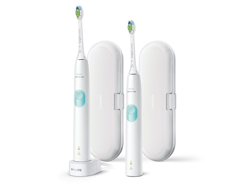 Philips Sonicare ProtectiveClean 4300 HX6807/35to szczoteczka soniczna posiadająca 1 program czyszczenia oraz 2 poziomy intensywności, czujnik siły nacisku oraz technologię BrushSync, która informuje o wymianie końcówki szczoteczki. Czujnik siły nacisku informuje przez wibracje o zbyt silnym szczotkowaniu.