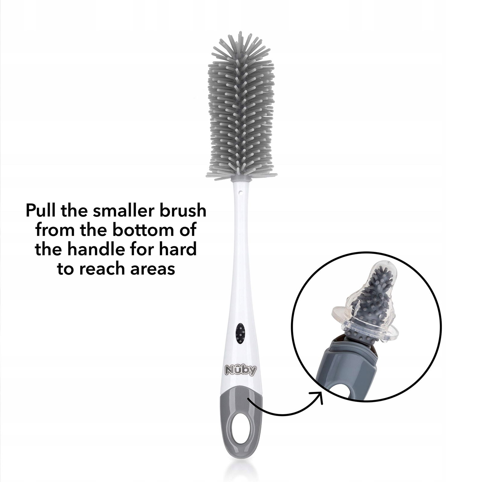 ✅ Funkcjonalność 2w1: Duża szczotka z miękkim włosiem jest idealna do dokładnego mycia wnętrza butelek, zaś mniejsza, ukryta w rączce, służy do precyzyjnego czyszczenia smoczków, bez ich uszkadzania.
