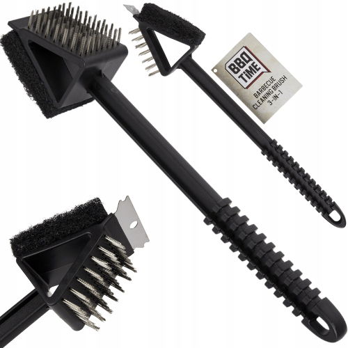 Szczotka do czyszczenia grilla rusztu BBQ TIME 3w1 długa czarna rączka