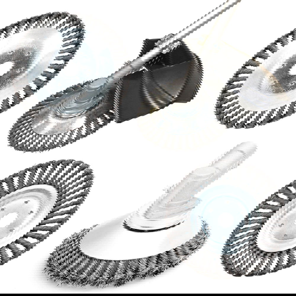 Stalowa szczotka obrotowa o średnicy zewnętrznej 200 mm oraz otworze montażowym 25,4 mm. Przeznaczona do stosowania w kosach spalinowych i podkaszarkach w celu usuwania chwastów i trawy z kostki brukowej, płyt betonowych oraz czyszczenia krawężników i obrzeży.