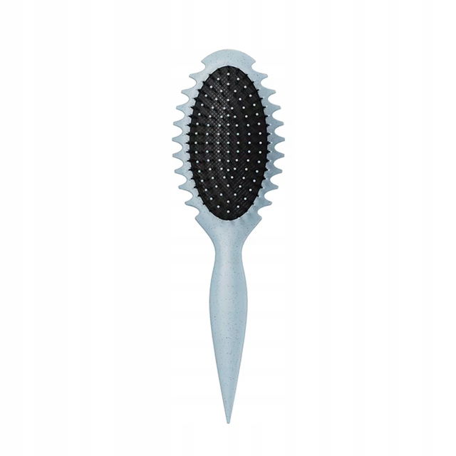 Curly Hair Brush Styling to lekka, ergonomiczna szczotka stworzona z myślą o podkreśleniu naturalnych fal i loków. Specjalnie profilowane, miękkie wypustki delikatnie rozczesują włosy, a jednocześnie unoszą je u nasady, nadając fryzurze objętość i sprężystość. Czarna, matowa obudowa z wyciągniętym uchwytem pewnie leży w dłoni, umożliwiając precyzyjną stylizację – bez szarpania czy łamania kosmyków.
