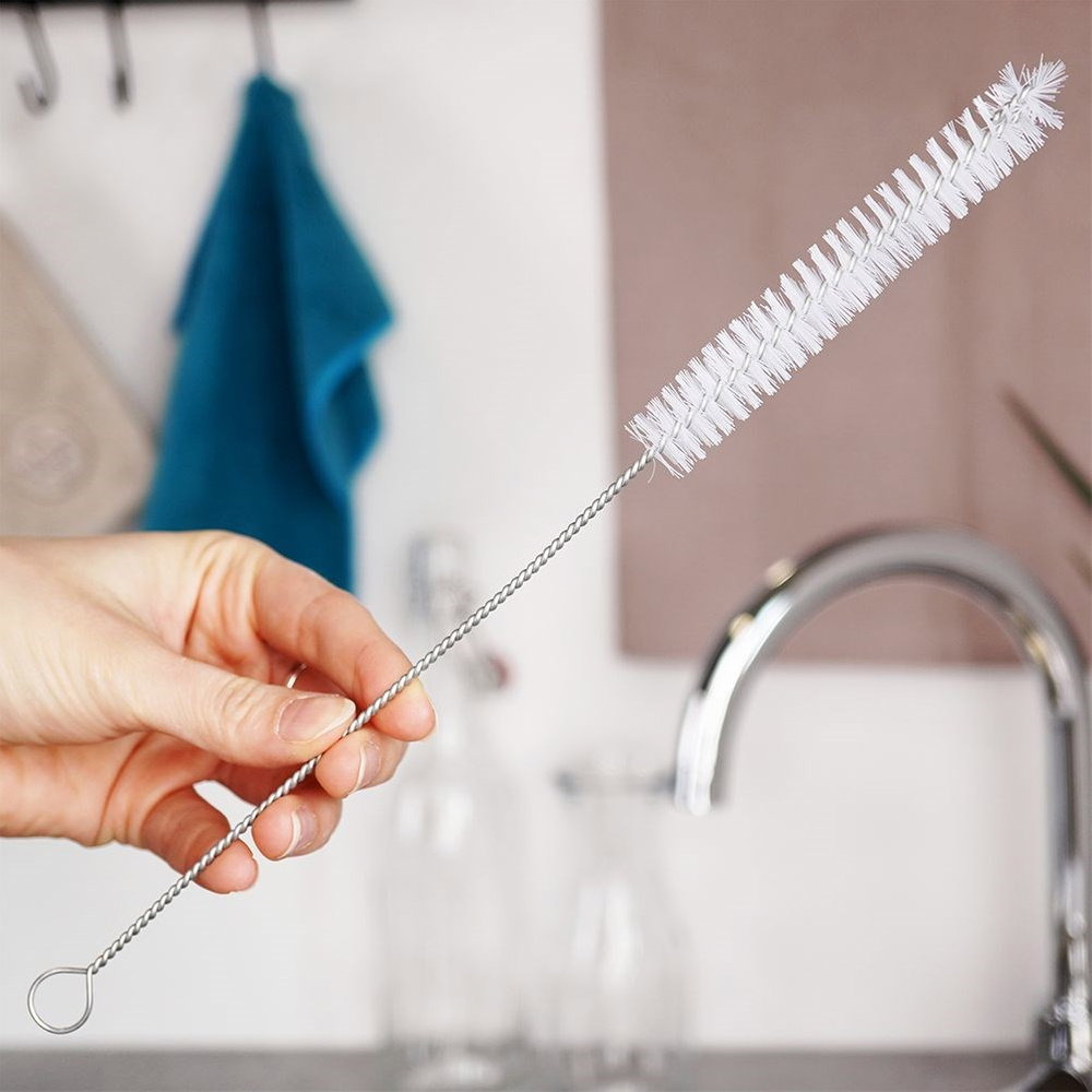 Długa i wąska szczotka do mycia butelek. Została zaprojektowana tak, aby z łatwością dotrzeć do wąskich naczyń. Z jej pomocą wyczyścimy szyjki butelek, wazonów, rurek i dziecięcych butelek. Wygodna w użytkowaniu.