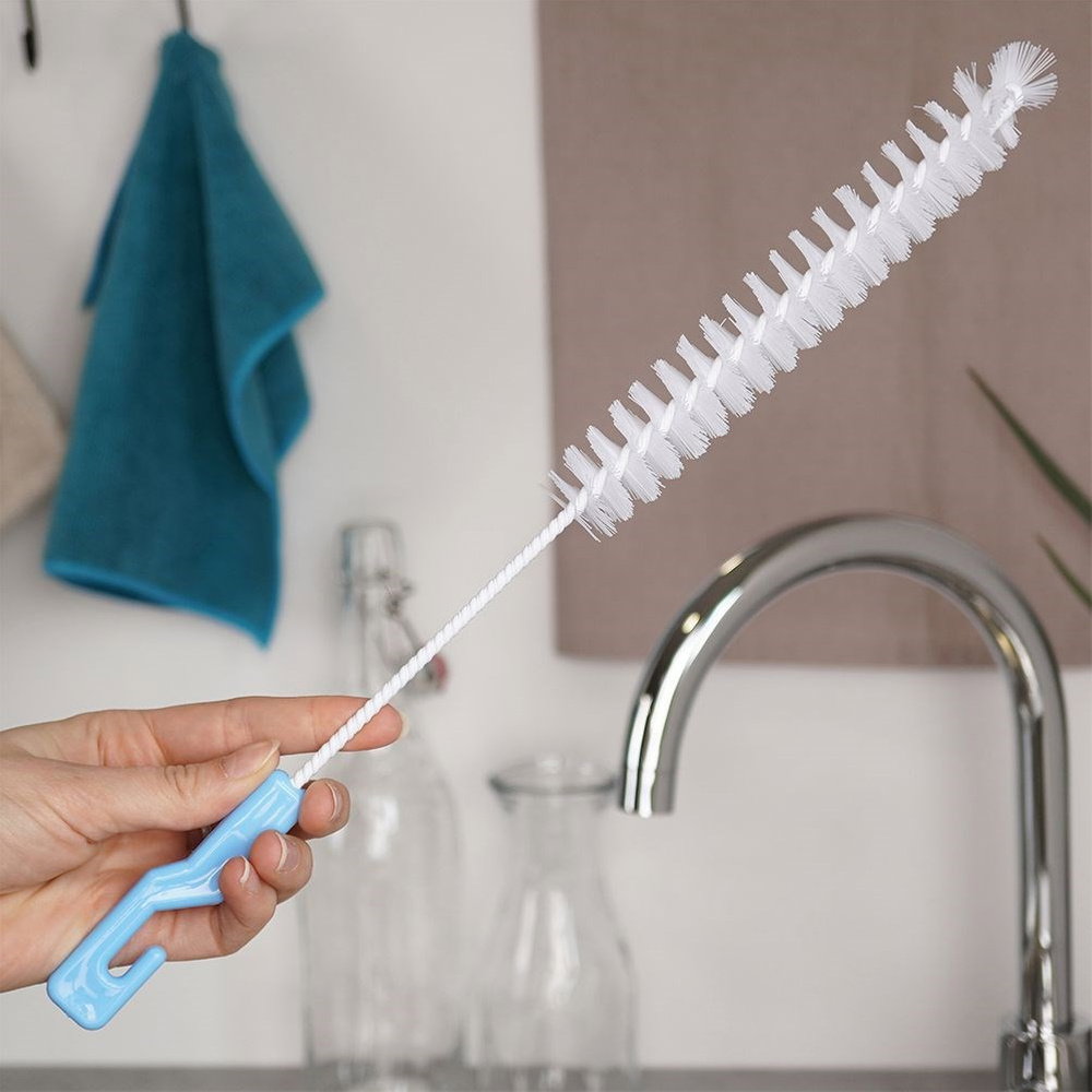 Długa i wąska szczotka do mycia butelek. Została zaprojektowana tak, aby z łatwością dotrzeć do wąskich naczyń. Z jej pomocą wyczyścimy szyjki butelek, wazonów, rurek i dziecięcych butelek. Wygodna w użytkowaniu.