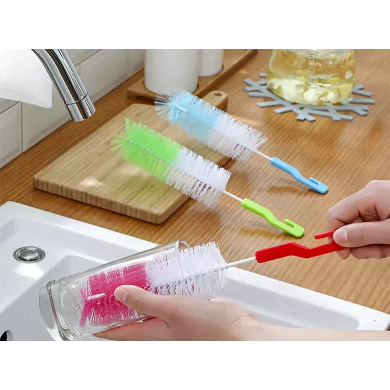 Szczotka do mycia butelek idealnie sprawdzi się w każdym domu. Przeznaczona jest do szorowania butelek szklanych oraz z tworzywa sztucznego. Świetnie sprawdzi się przy codziennym myciu butelek dla niemowląt. Szczotka posiada na końcu gąbkę, która delikatnie myje powierzchnie szklane i plastikowe bez