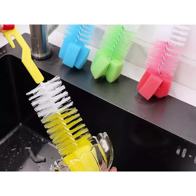 Szczotka posiada na końcu gąbkę, która delikatnie myje powierzchnie szklane i plastikowe bez zbędnych zarysowań.